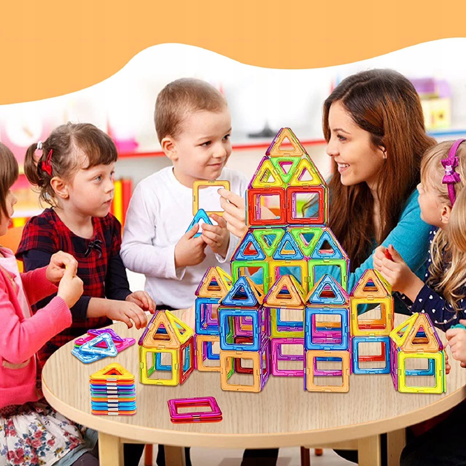 Играть с магнитными игрушками с другими детьми веселее, чем играть в одиночку. Дети вдохновляют друг друга, поэтому они играют более серьезно, что также полезно для развития у детей способности ладить с другими. Процесс сборки полностью контролируется ребенком, что приносит ему удовлетворение и уверенность в своих силах.