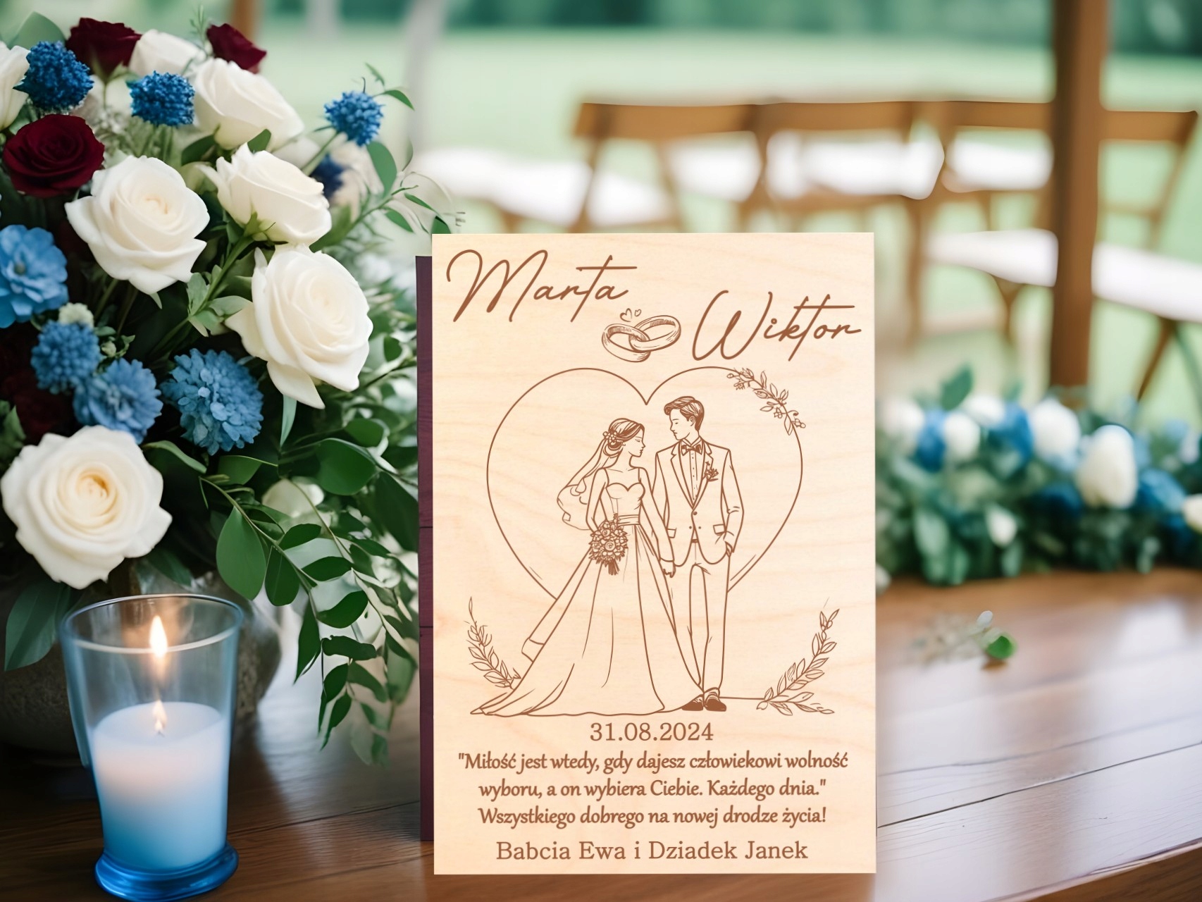 Деревянный сувенир - Свадебная открытка - Свадебный подарок - пожелания для жениха и невесты (10x15 см) Лазерная гравирована h1>