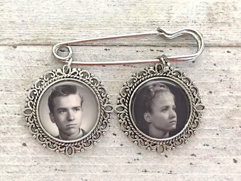 Стеклянная подвеска с булавкой для бутоньерки/свадебного букета с присланными Вами фотографиями, графикой, текстом.