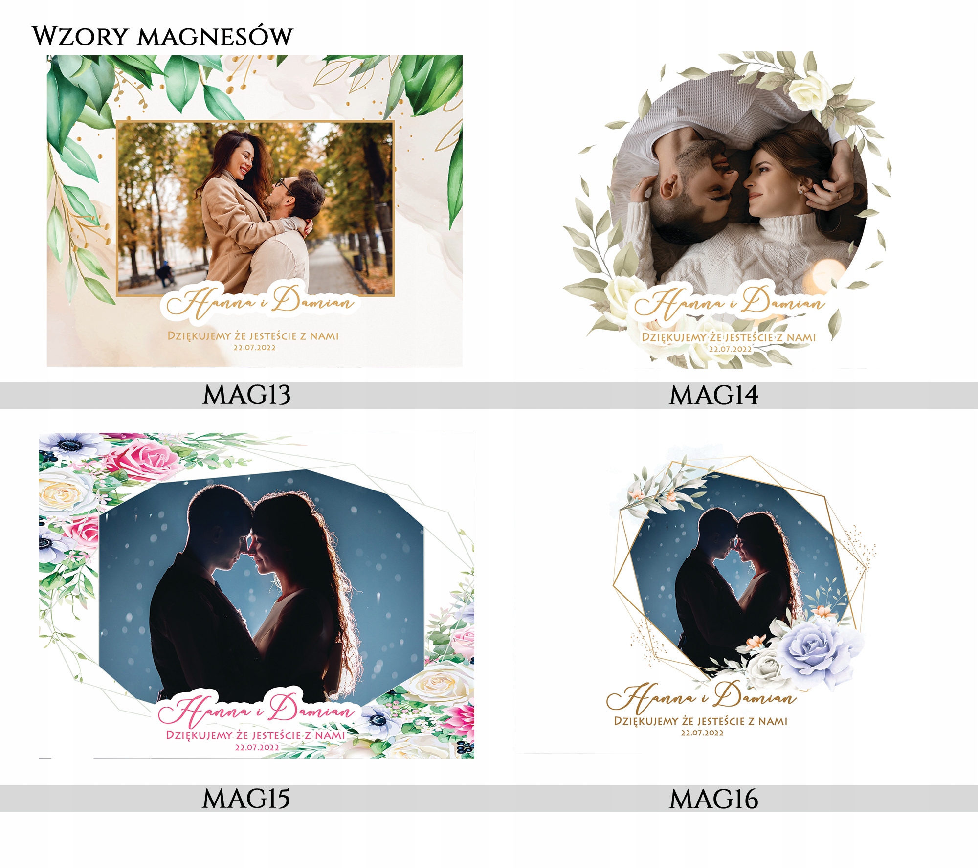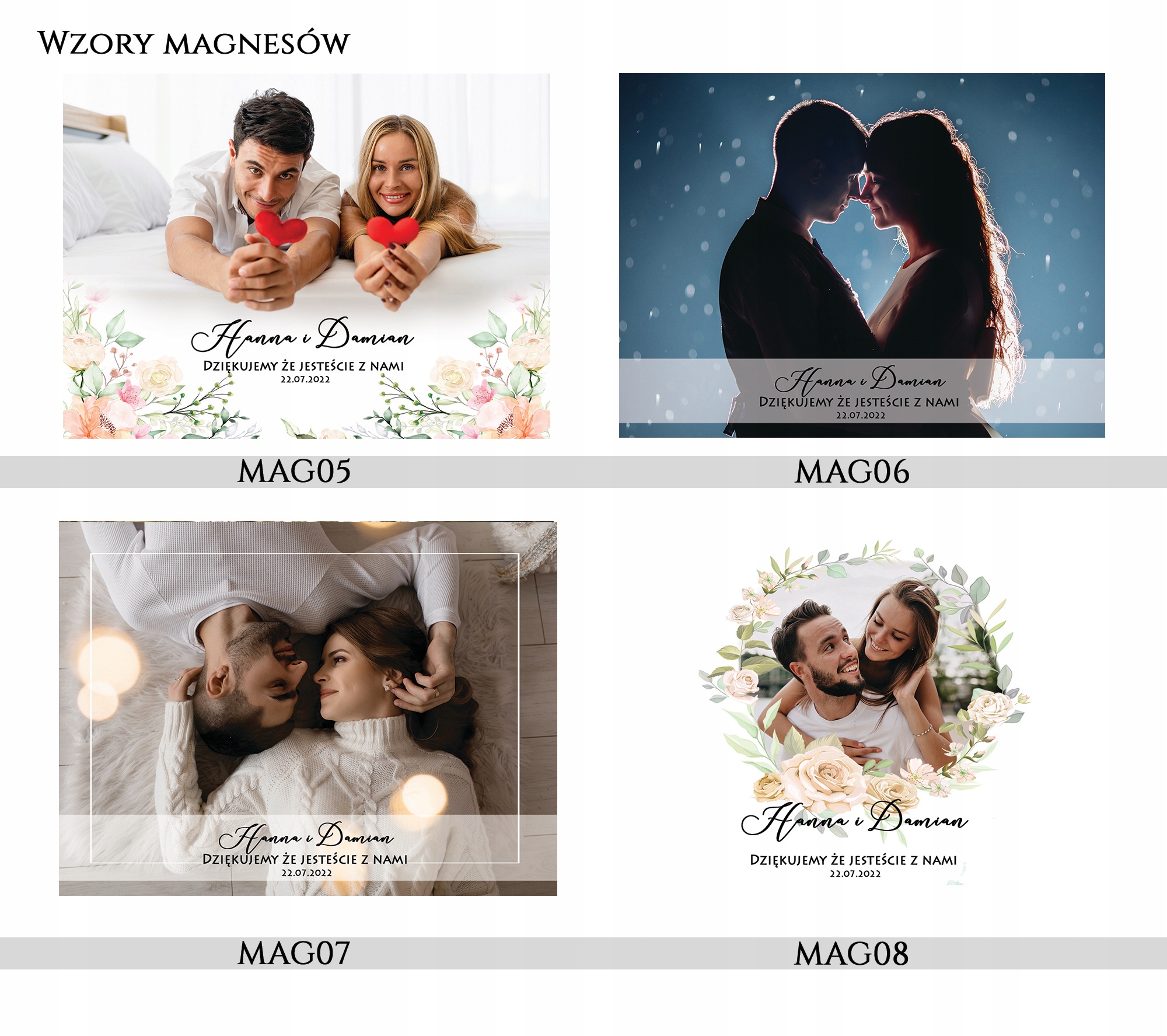 - имя и фамилия жениха и невесты с датой церемонии