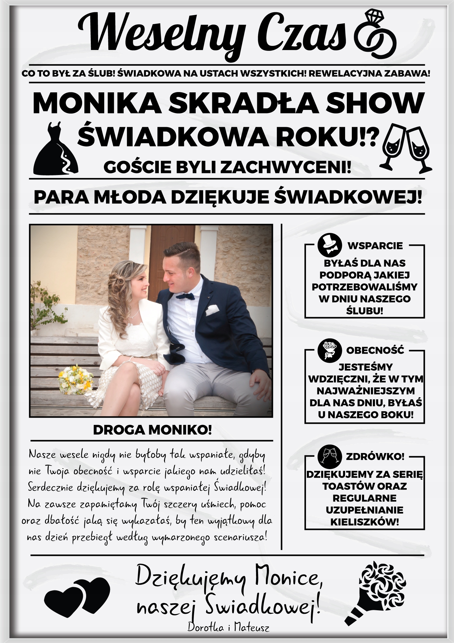 Уникальная свадебная благодарность жениху и невесте в виде газеты-плаката, помещенной в рамку А4