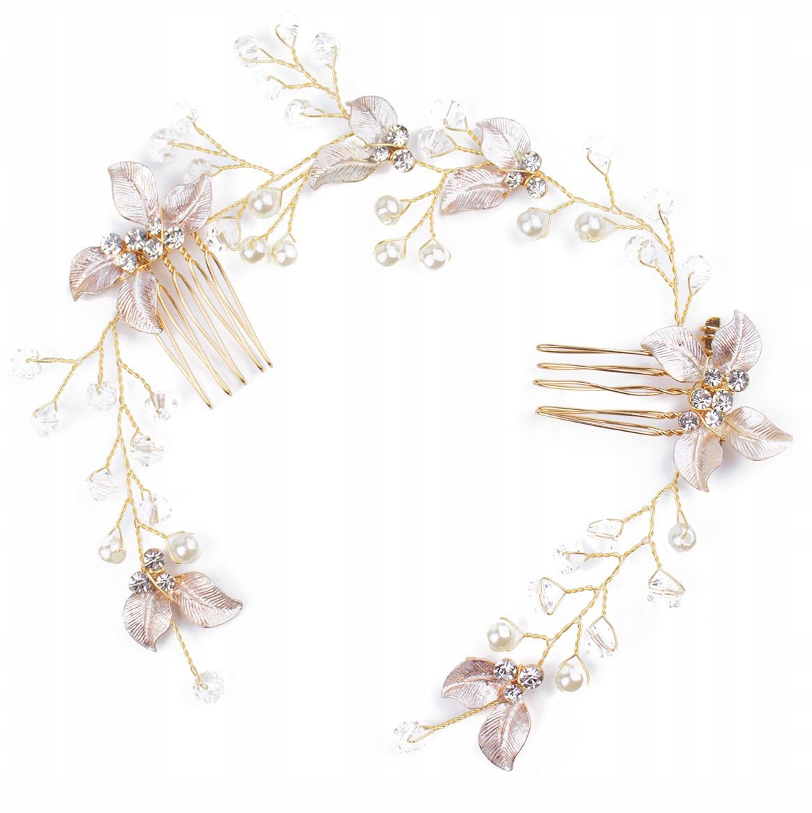 ВЕСІЛЬНА ПРИКРАСА ВОЛОССЯ ГРЕБЕНЬ, гілочка - золотий колір - весільні ПЕРЛИНИ