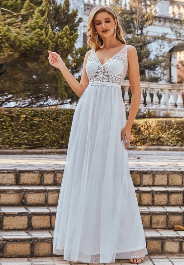 БЕЛОЕ КЛАССИЧЕСКОЕ СВАДЕБНОЕ ПЛАТЬЕ МАКСИ 42 V3I