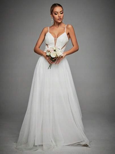 ВЕСІЛЬНА СУКНЯ ЖІНОЧА БІЛА ТЮЛЬ ДОВГА 38 V9A