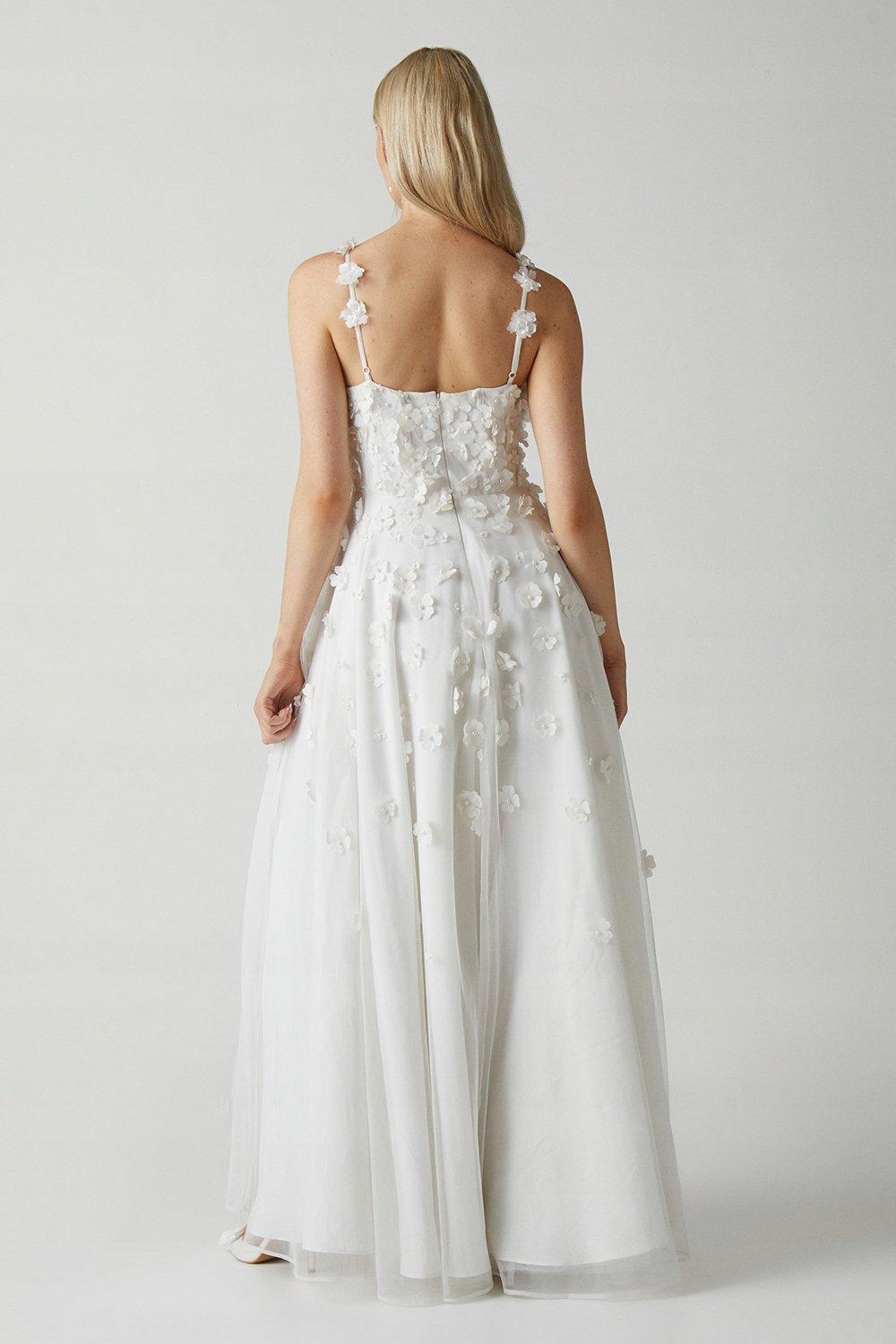СВАДЕБНОЕ ПЛАТЬЕ МАКСИ С ДЕКОРАТИВНЫМИ ЦВЕТАМИ НА бретелях, ОТТЕНОК БЕРЕГ Слоновой Кости 38