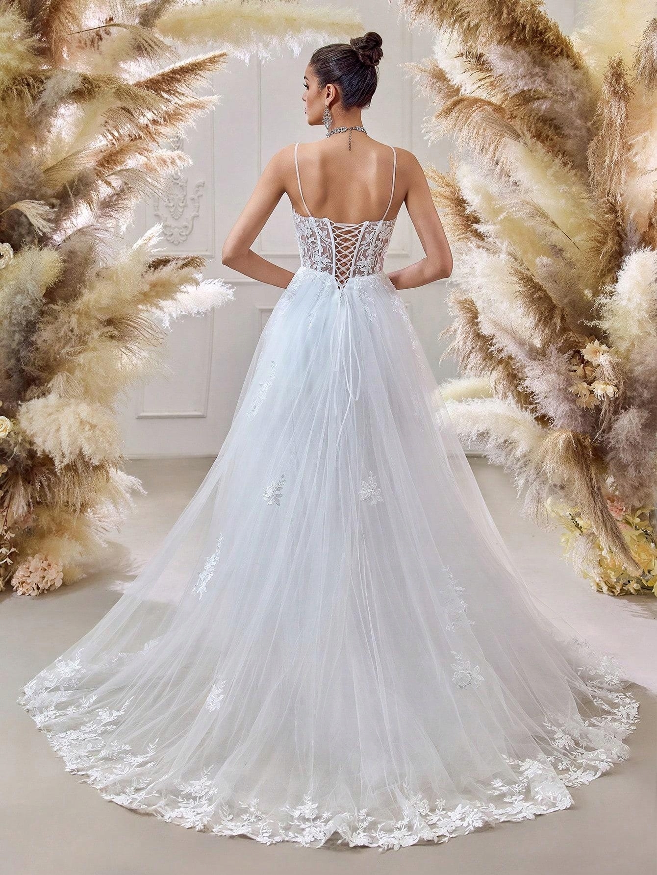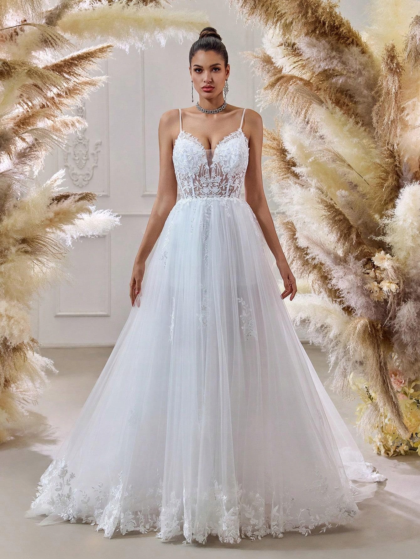 SHEIN СВАДЕБНОЕ ПЛАТЬЕ С КРУЖЕВНЫМ КОРСЕТОМ (39) 36 размеров LC46102