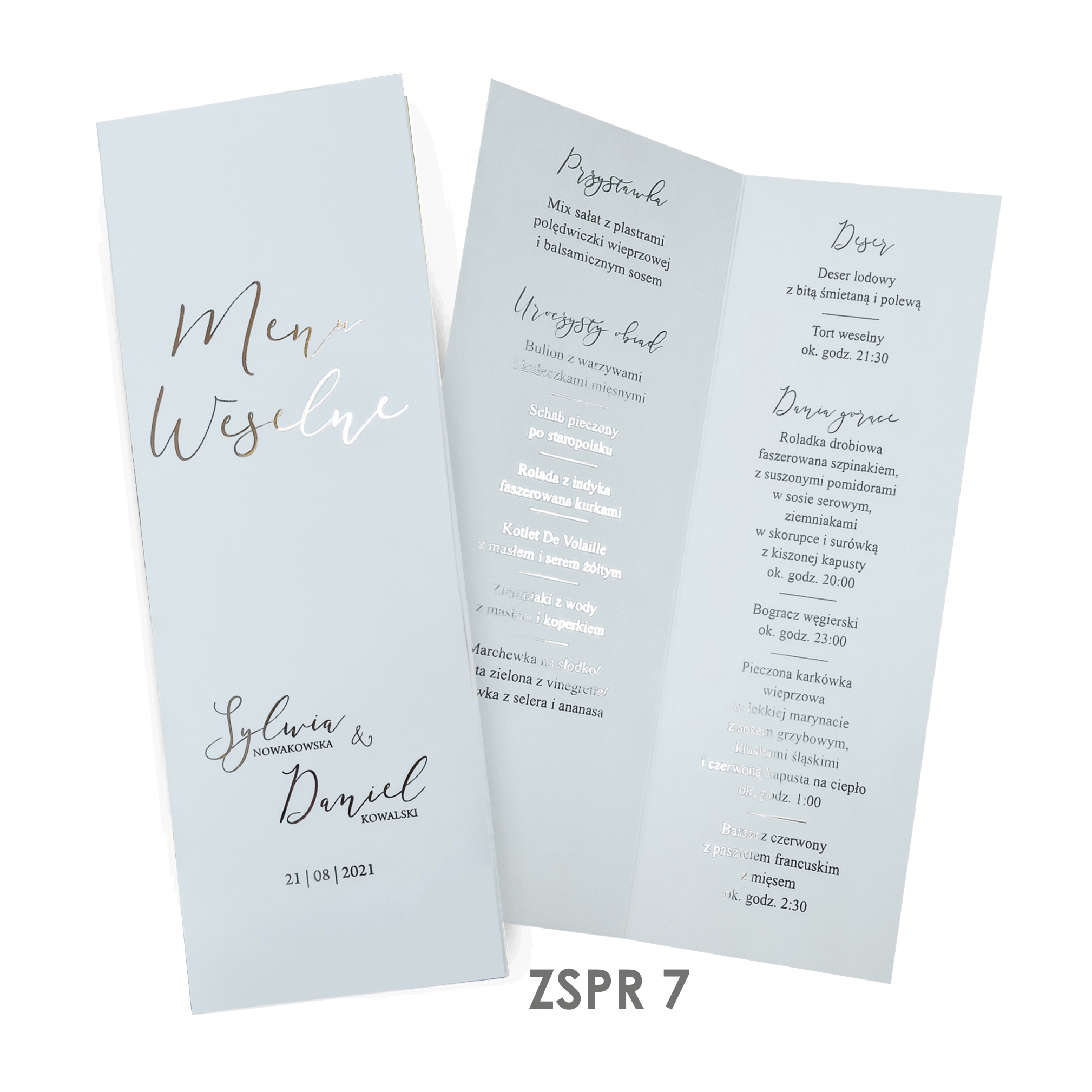 - предоставьте дизайн и бумагу выбранного Меню (например, ZSPR 2),