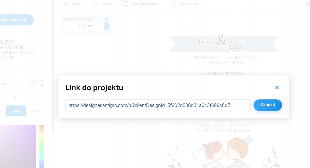 Хотите, чтобы кто-то из ваших близких увидел подготовленные вами дизайны перед их покупкой? Воспользуйтесь опцией «Ссылка на проект» и скопируйте полученный адрес сайта.