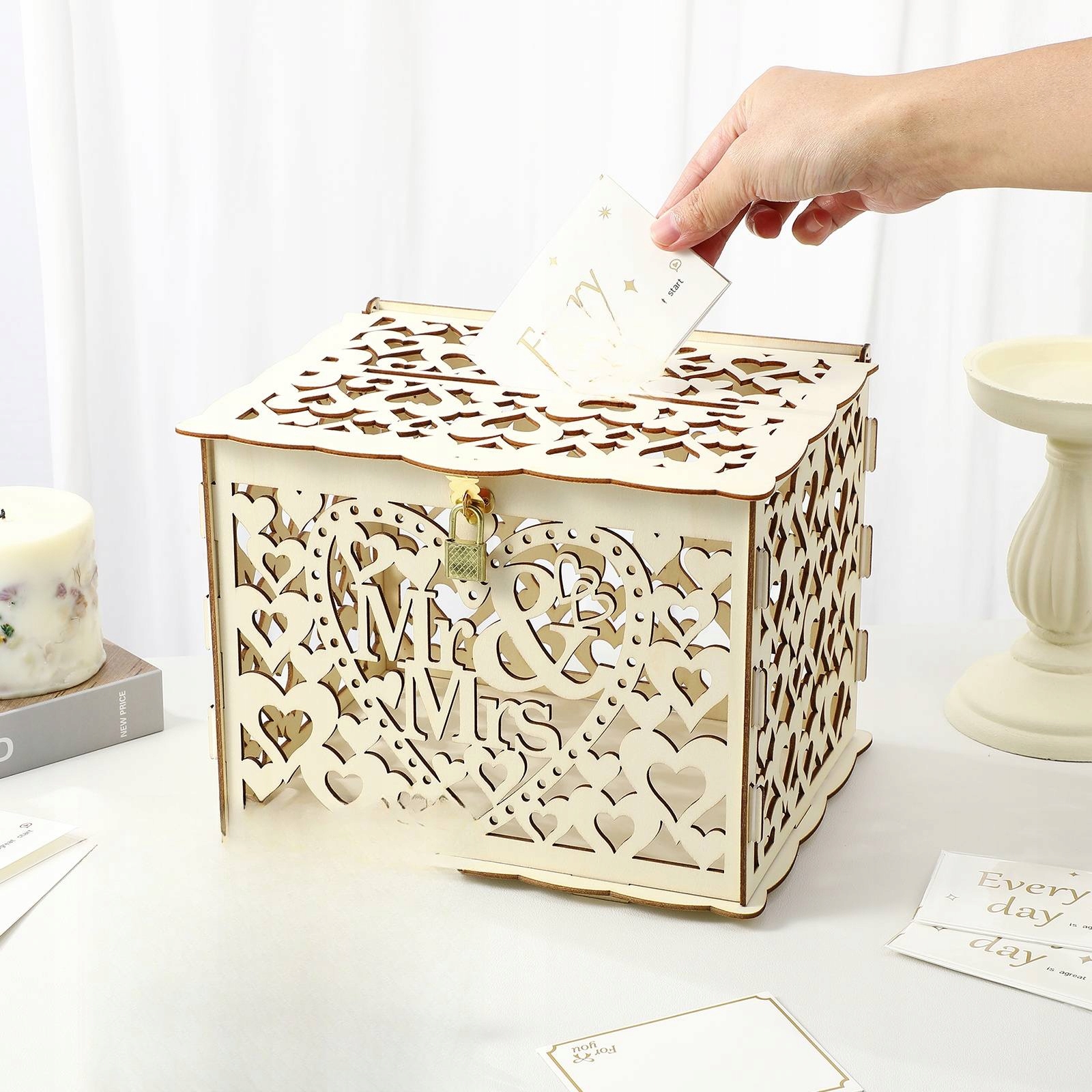 ✅Этот предмет изготовлен из древесного материала с креативным и красивым полым узором и рисунком «». Отлично подходит для хранения открыток, цветов, конфет или небольших подарков, отличных коробок для подарков на свадьбу, вечеринку, чтобы сделать ее незабываемой.