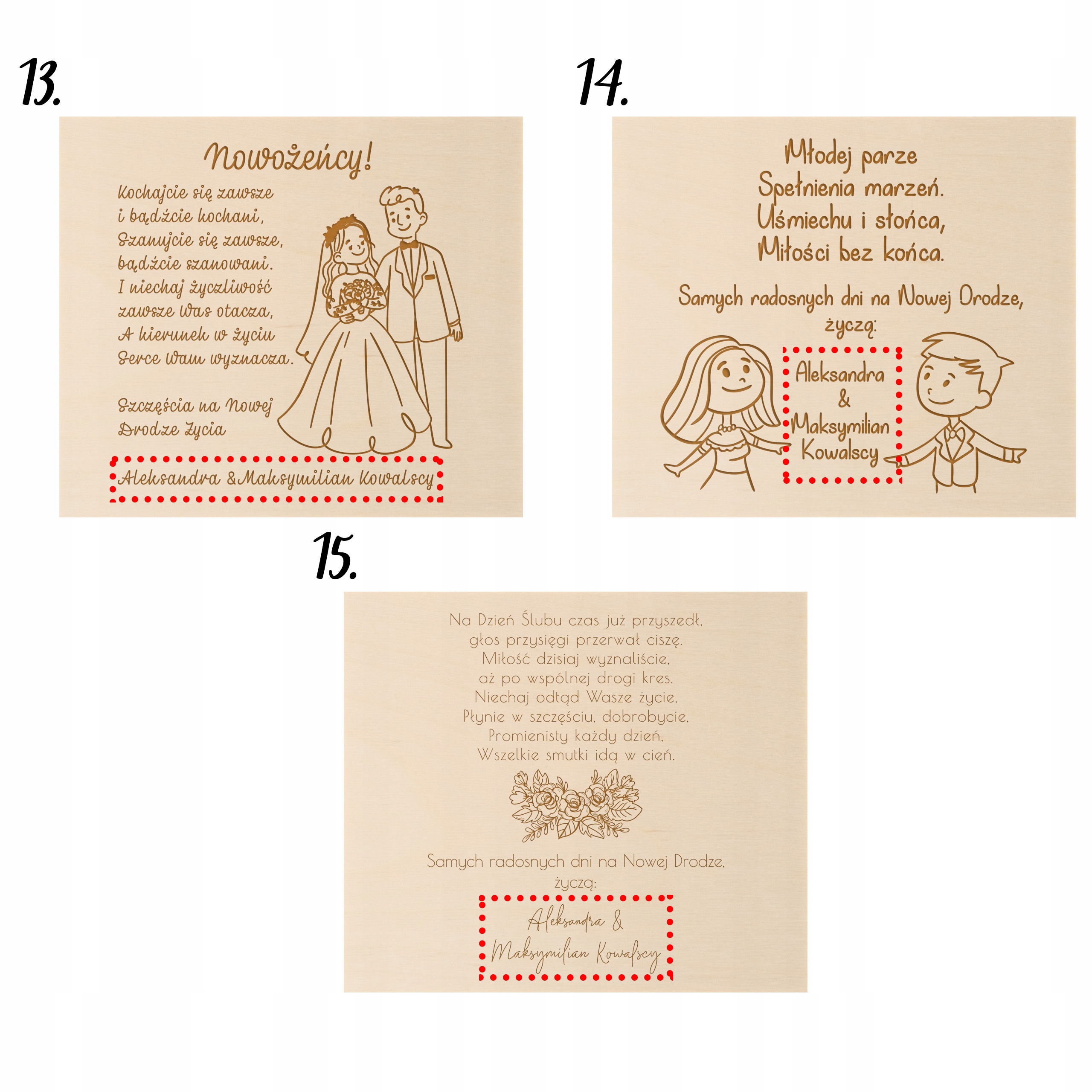 Поздравления и пожелания, переданные молодоженам в виде выгравированной надписи на деревянной открытке, станут оригинальной альтернативой традиционным решениям.