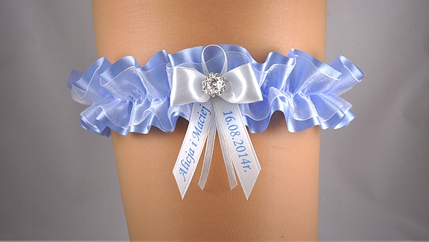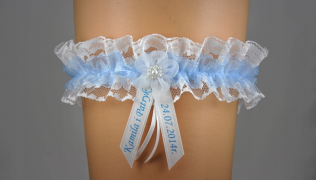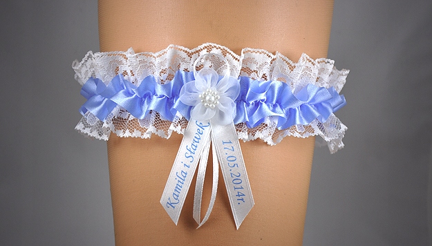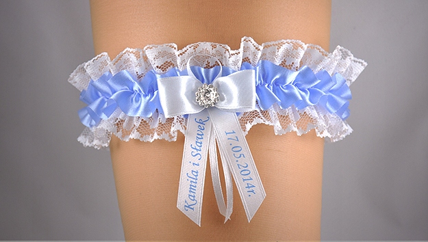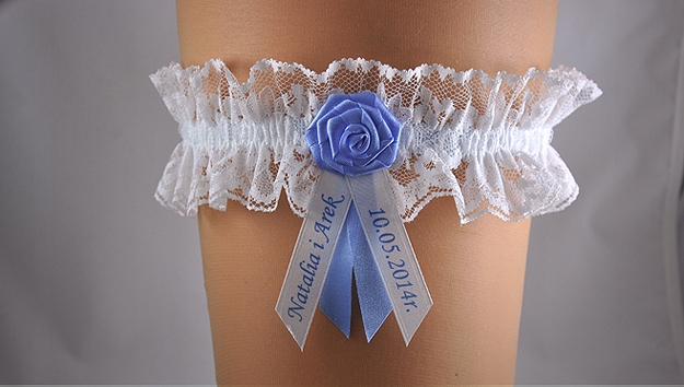 Мы рады предложить Вам красивые, персонализированные (имя жениха и дата свадьбы), элегантные подвязки. Каждый наш дизайн выполнен с использованием тонких кружев и лент. Широкий выбор шнурков и узоров гарантирует, что каждая невеста найдет для себя подходящую подвязку - каждый узор выполнен в бело-синем цвете и гарантирует счастье :)