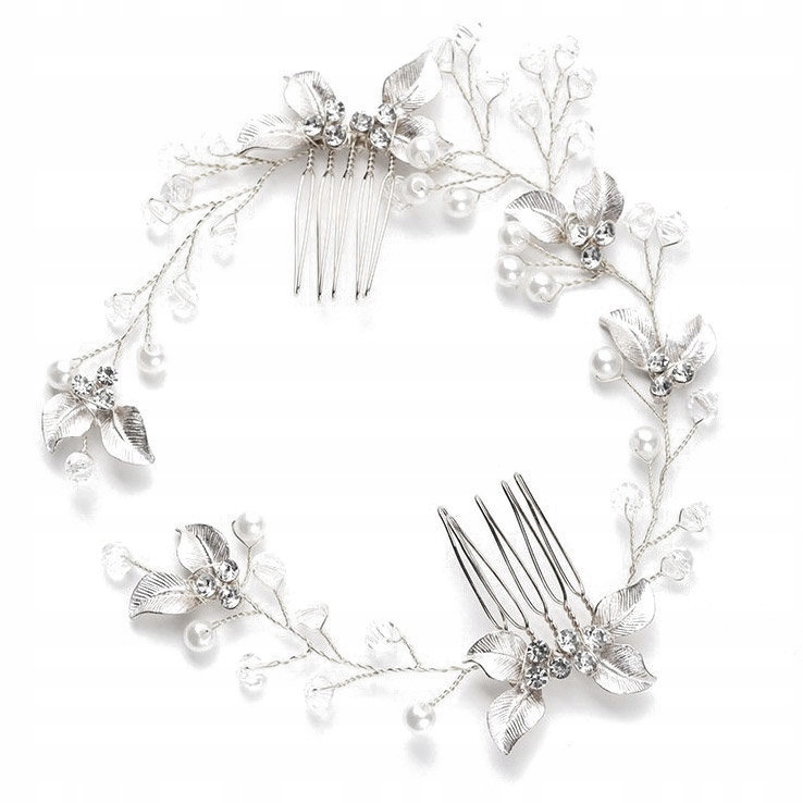 ВЕСІЛЬНІ ПРИКРАСИ для волосся ПЕРЛИНИ стрази ГРЕБІНЬ