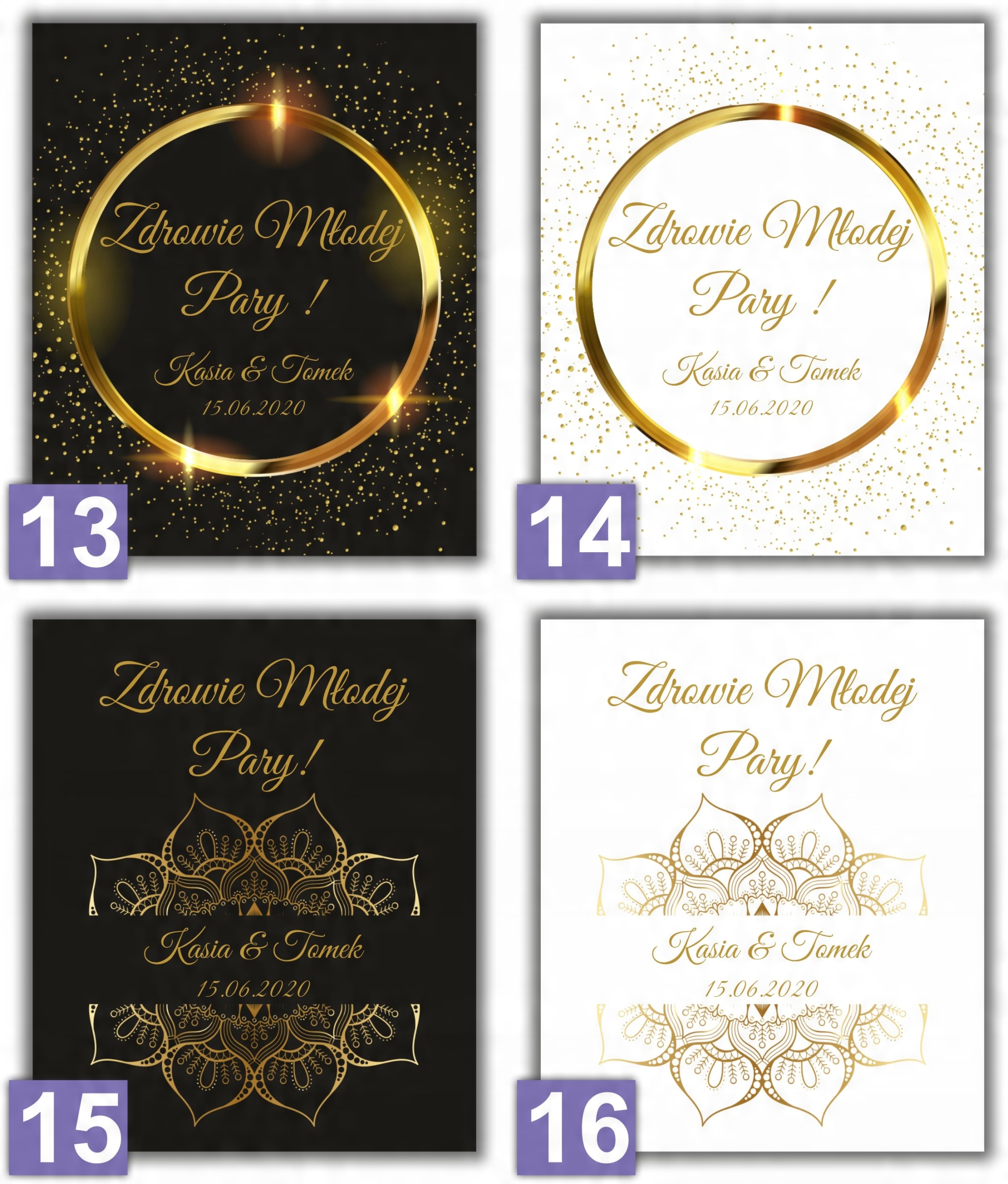 Весільні спиртові наклейки золоті 20 шт.
