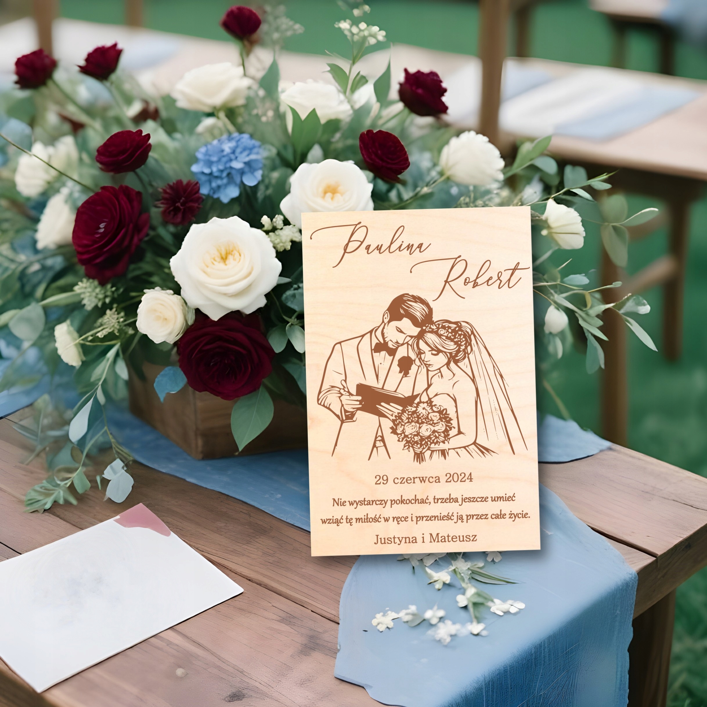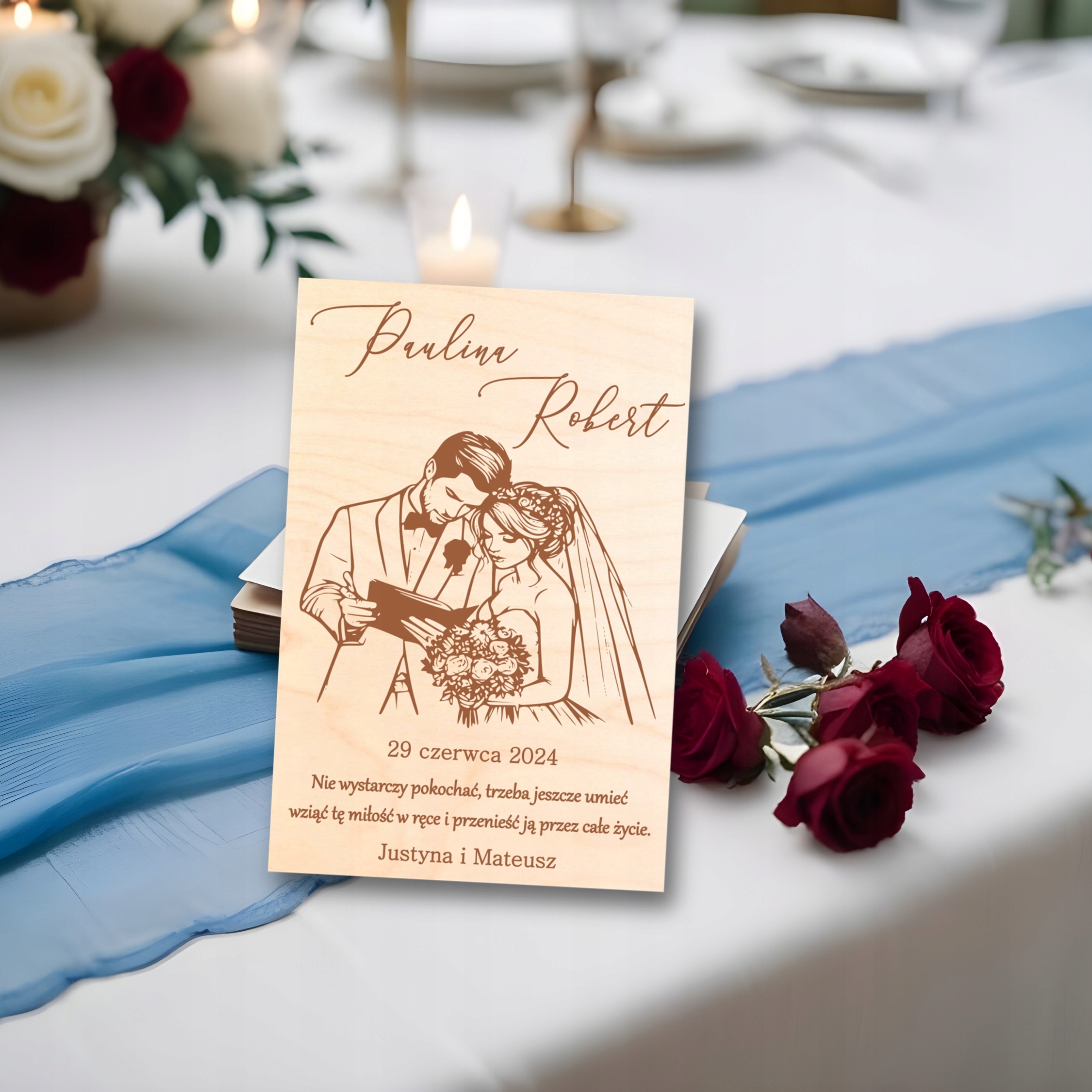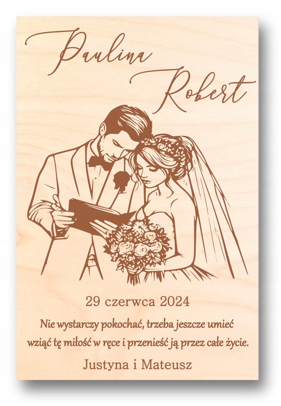 ДЕРЕВЯННЫЕ СУВЕНИРЫ - СВАДЕБНАЯ ОТКРЫТКА - СВАДЕБНЫЙ ПОДАРОК - ПОЖЕЛАНИЯ ДЛЯ НЕВЕСТЫ И ГРУППЫ (10x15 см) ЛАЗЕРНАЯ ГРАВИРОВКА