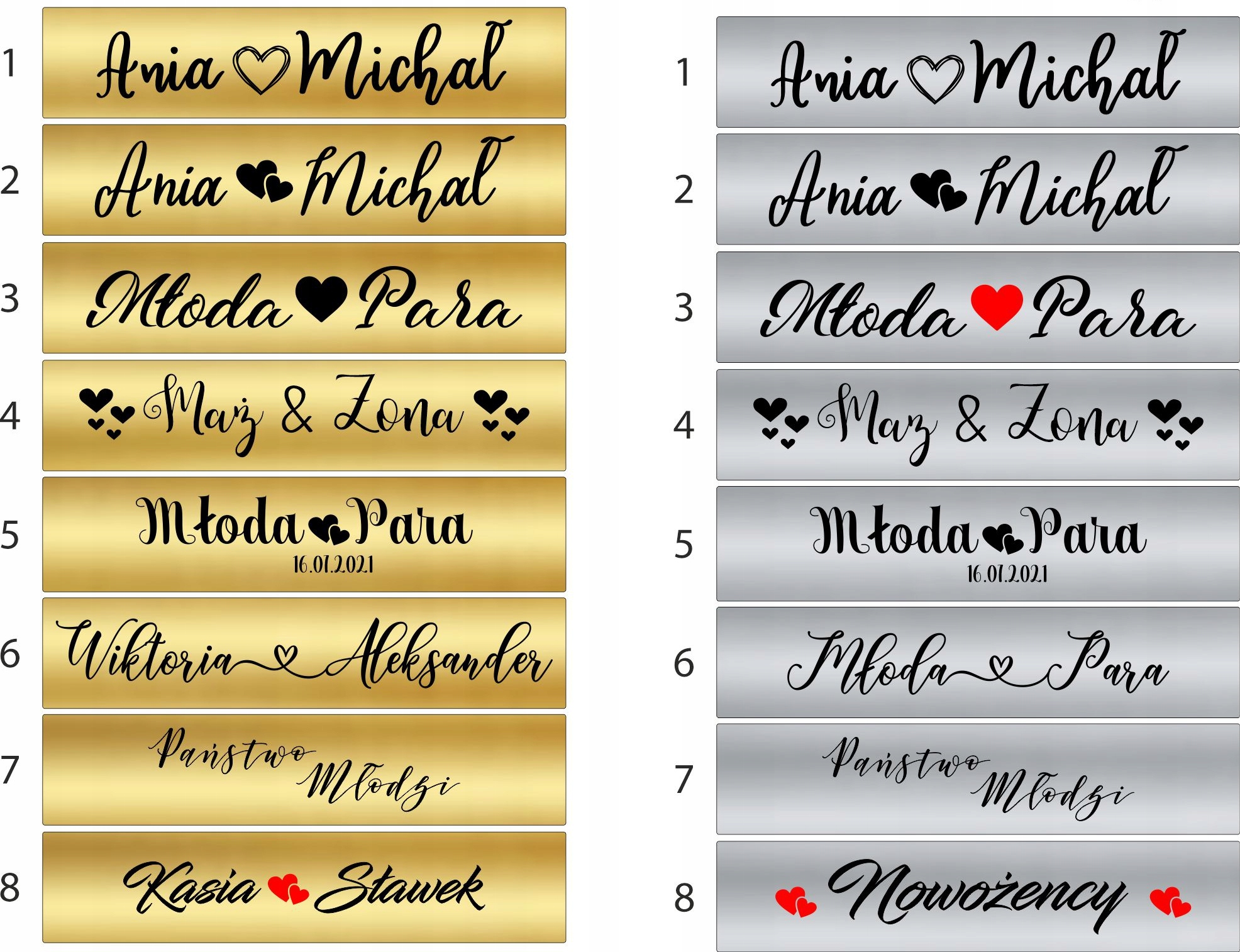 - Надписи: Kasia, Sławek - золотой. плакетка, Молодая пара - золотая табличка.
