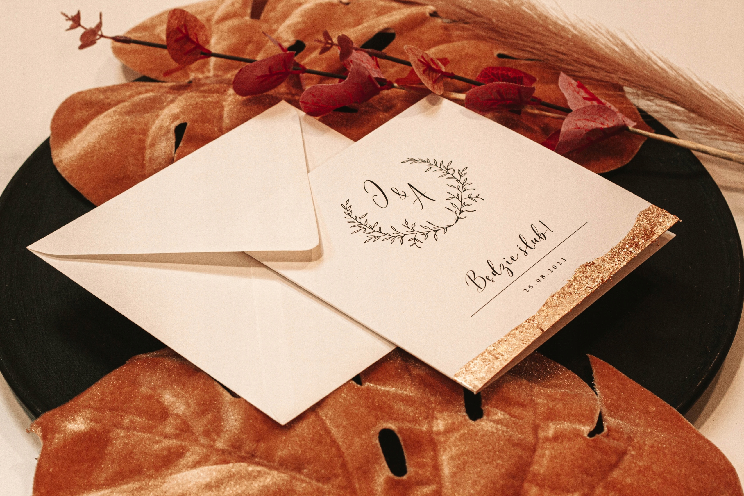 Приглашение на свадьбу с нанесенным вручную сусальным золотом