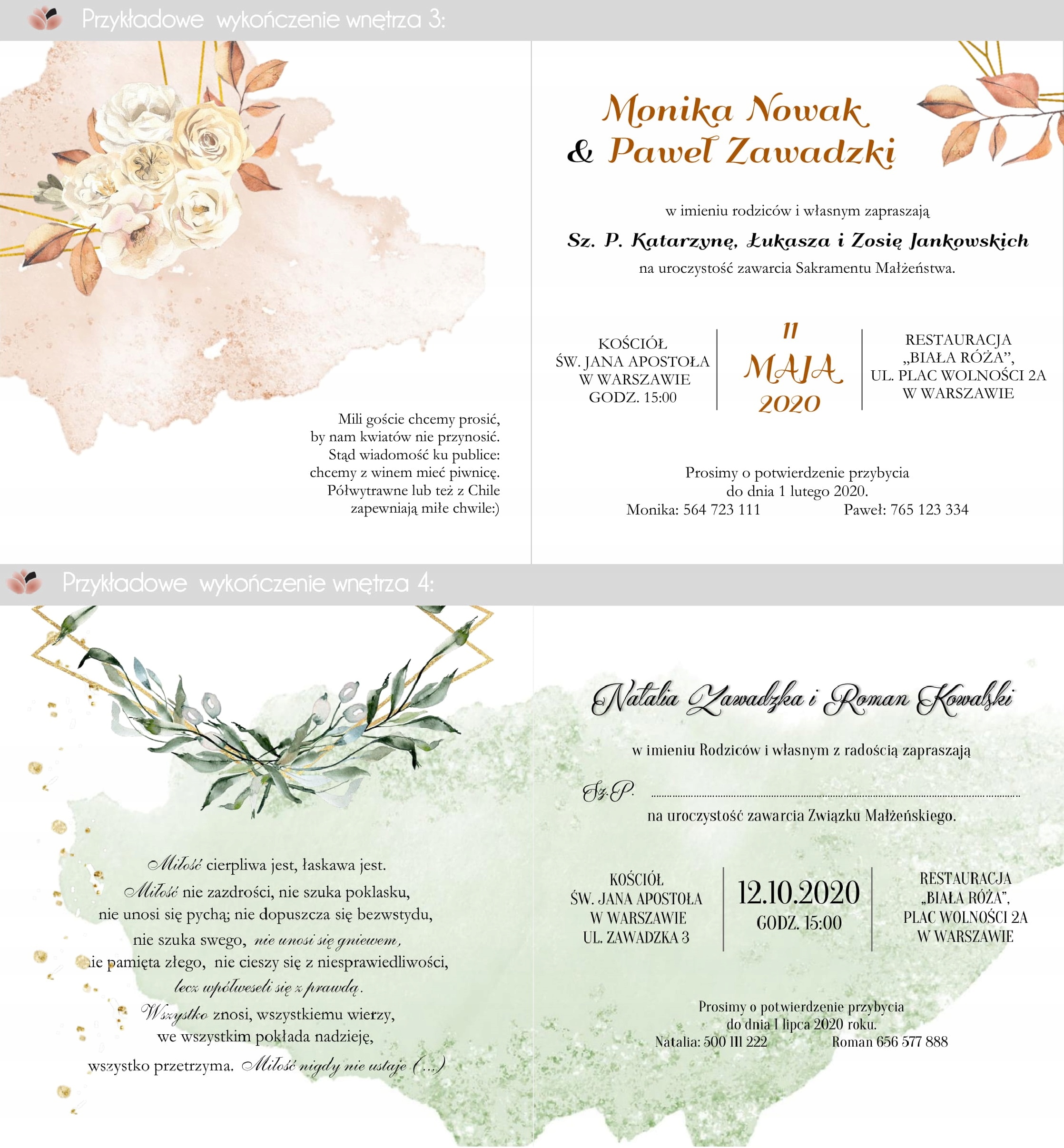 Вы должны приобрести необходимое количество выбранные приглашения - до 10 штук. Оплатите заказ и отправьте продавцу сообщение с указанием названий выбранных моделей приглашений. Средства отправляются случайным образом.Мы не меняем данные в образцах, не добавляем вашу информацию, поэтому отправлять их нет необходимости. Мы не реализуем проект здесь.Мы доставляем образцы почтой или посылочным автоматом. Образцы до 3-х штук почтой 8,90 злотых.После оплаты мы обрабатываем заказ. Образцы обрабатываются по порядку, как и основные заказы. Мы рассматриваем все заказы как приоритетные.Из-за различных настроек монитора цвета могут незначительно отличаться.