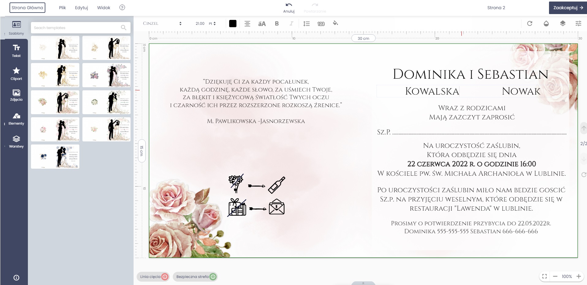- Перед печатью вы сможете создать собственный дизайн приглашения