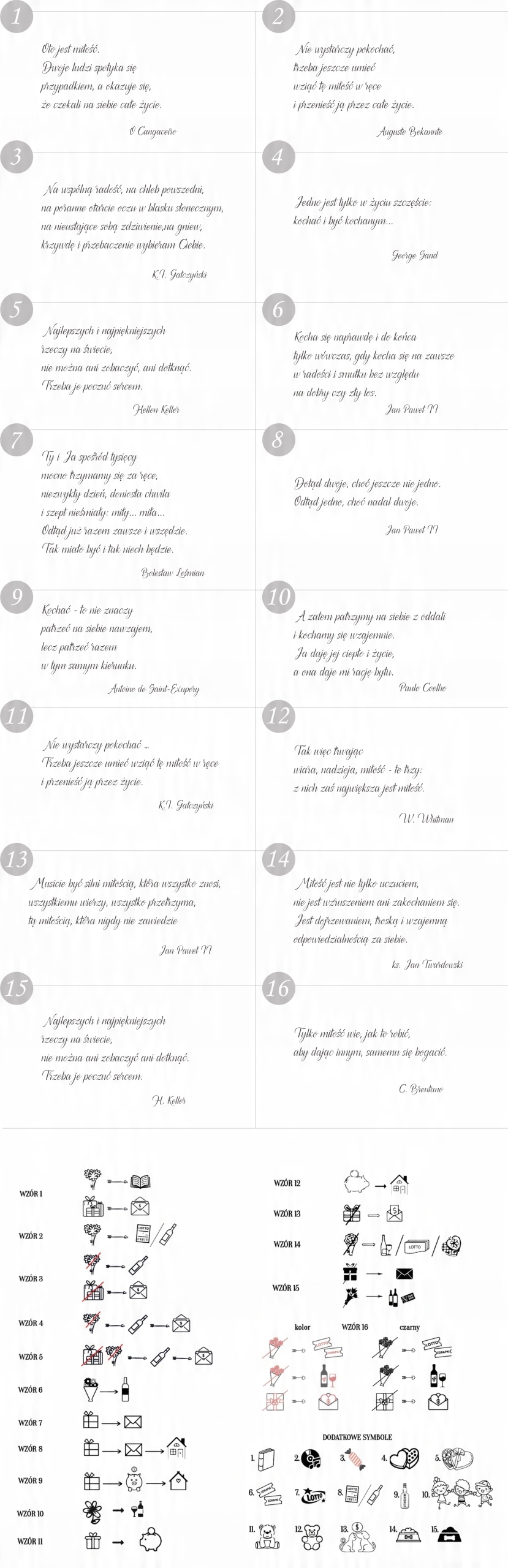- после совершения покупки вы получите от нас по электронной почте форму для заполнения, в которой мы просим вас предоставить данные относительно графического оформления, изречений и рисунка текста, списков гостей, даты, времени, места проведения свадьбы и т. д.
