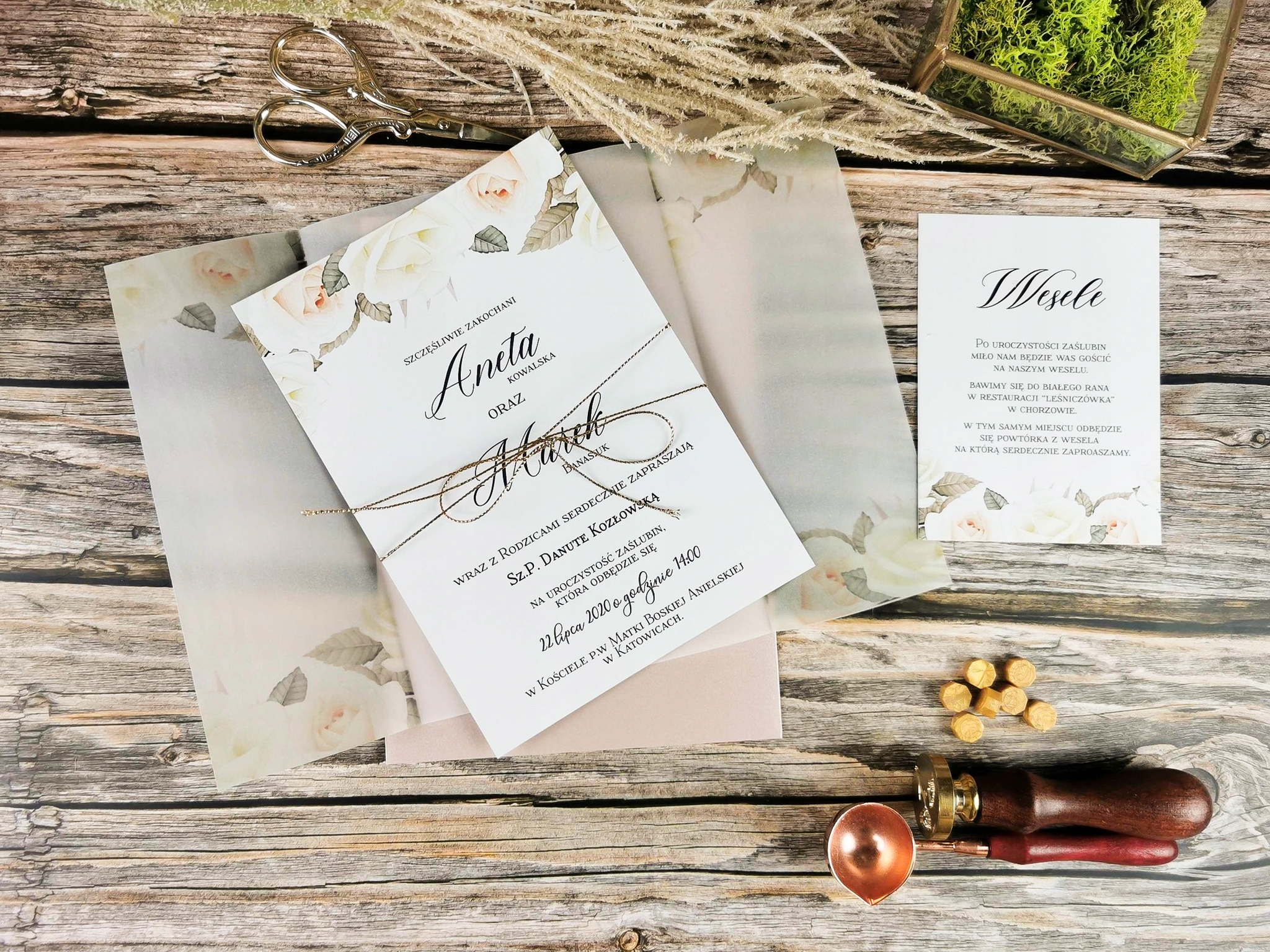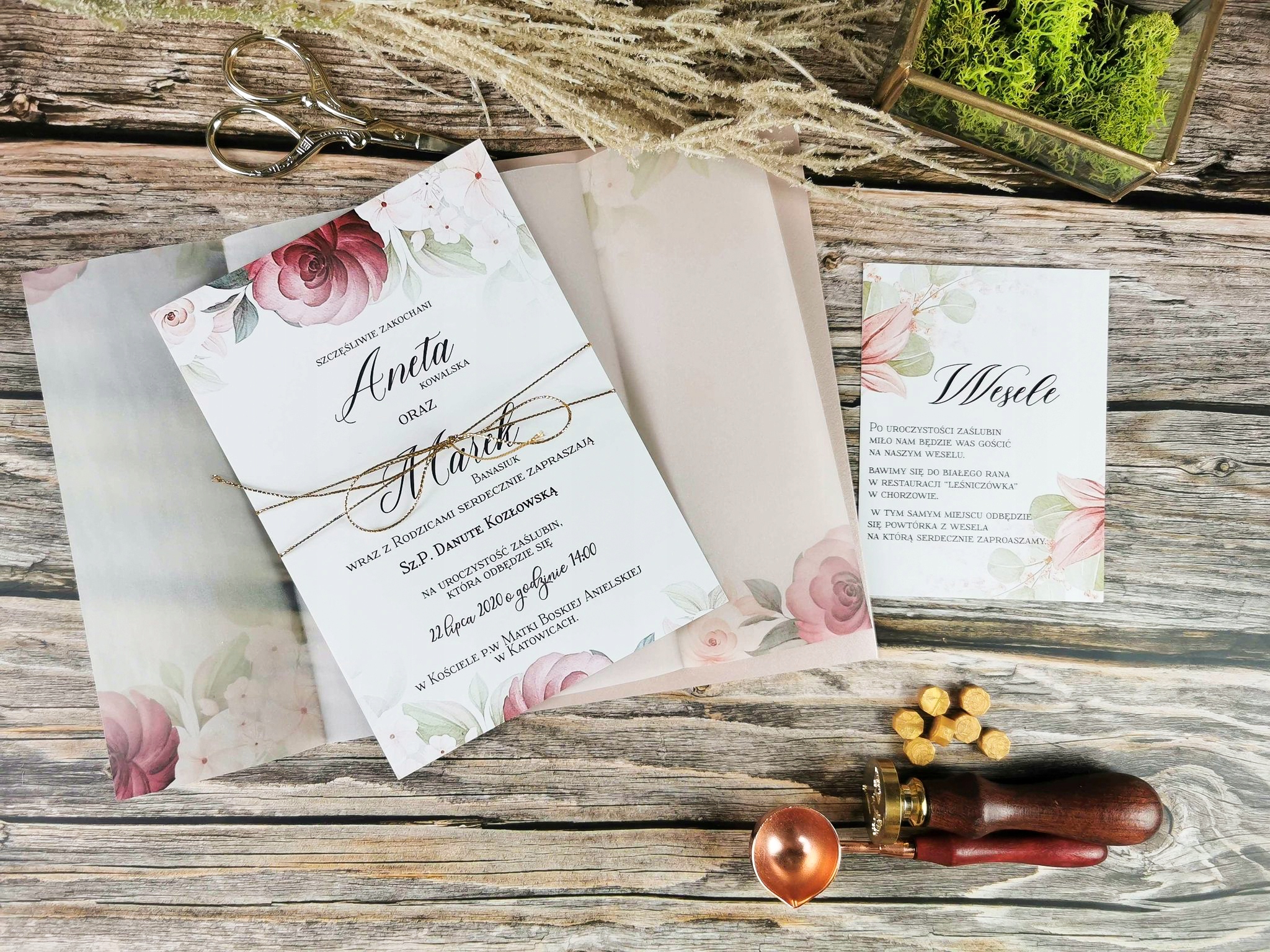 Весільні запрошення Весілля з листівкою з калькою