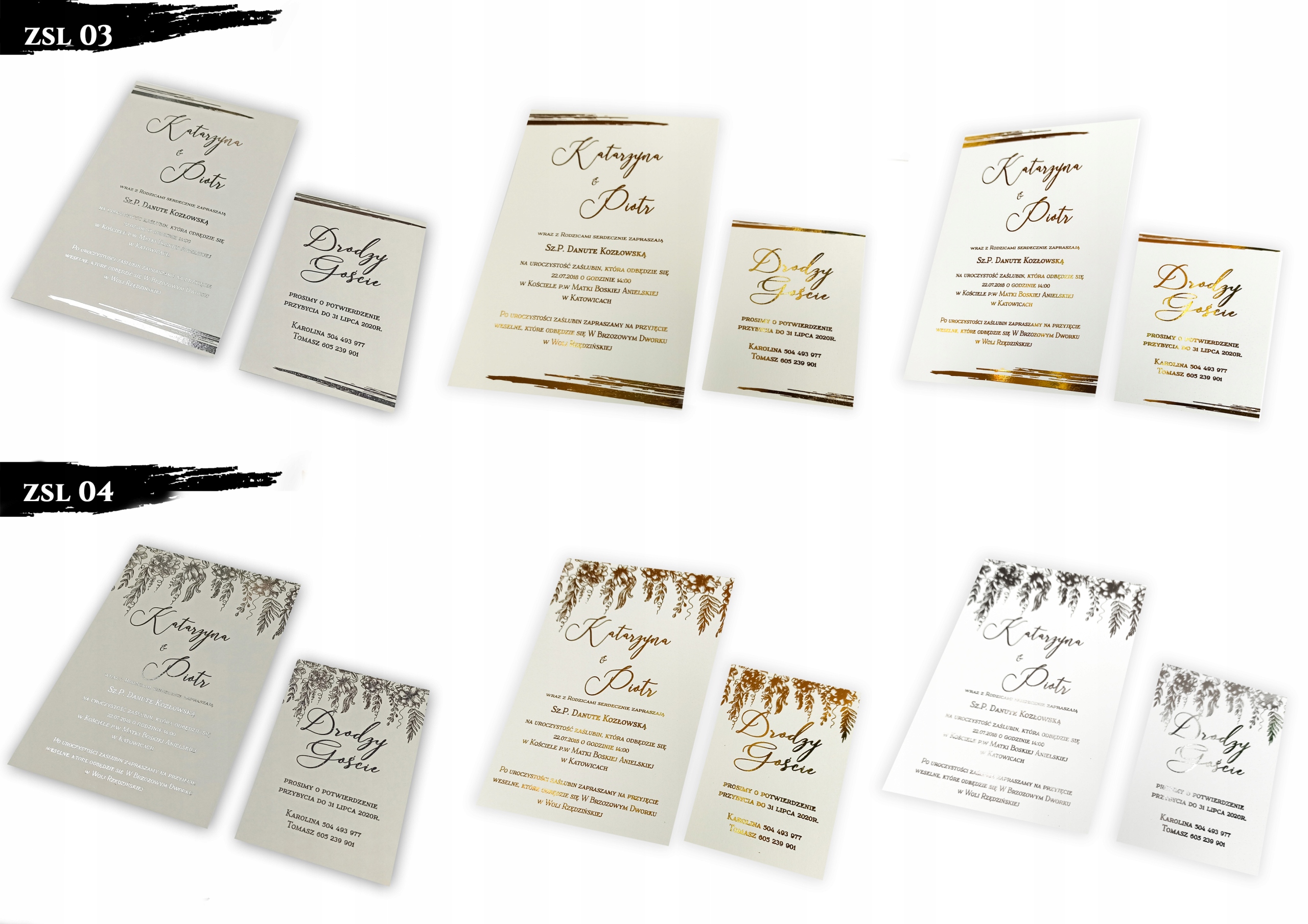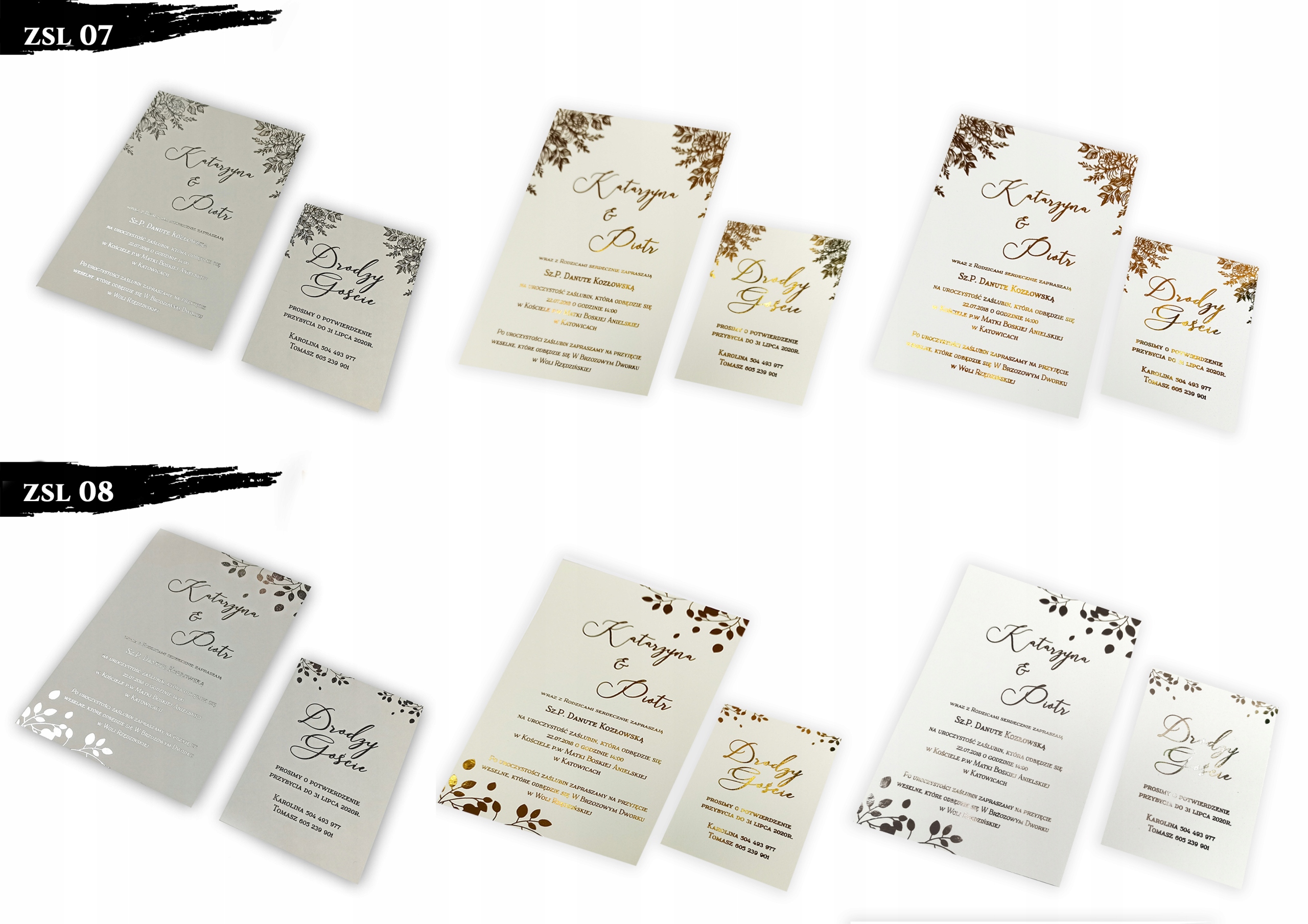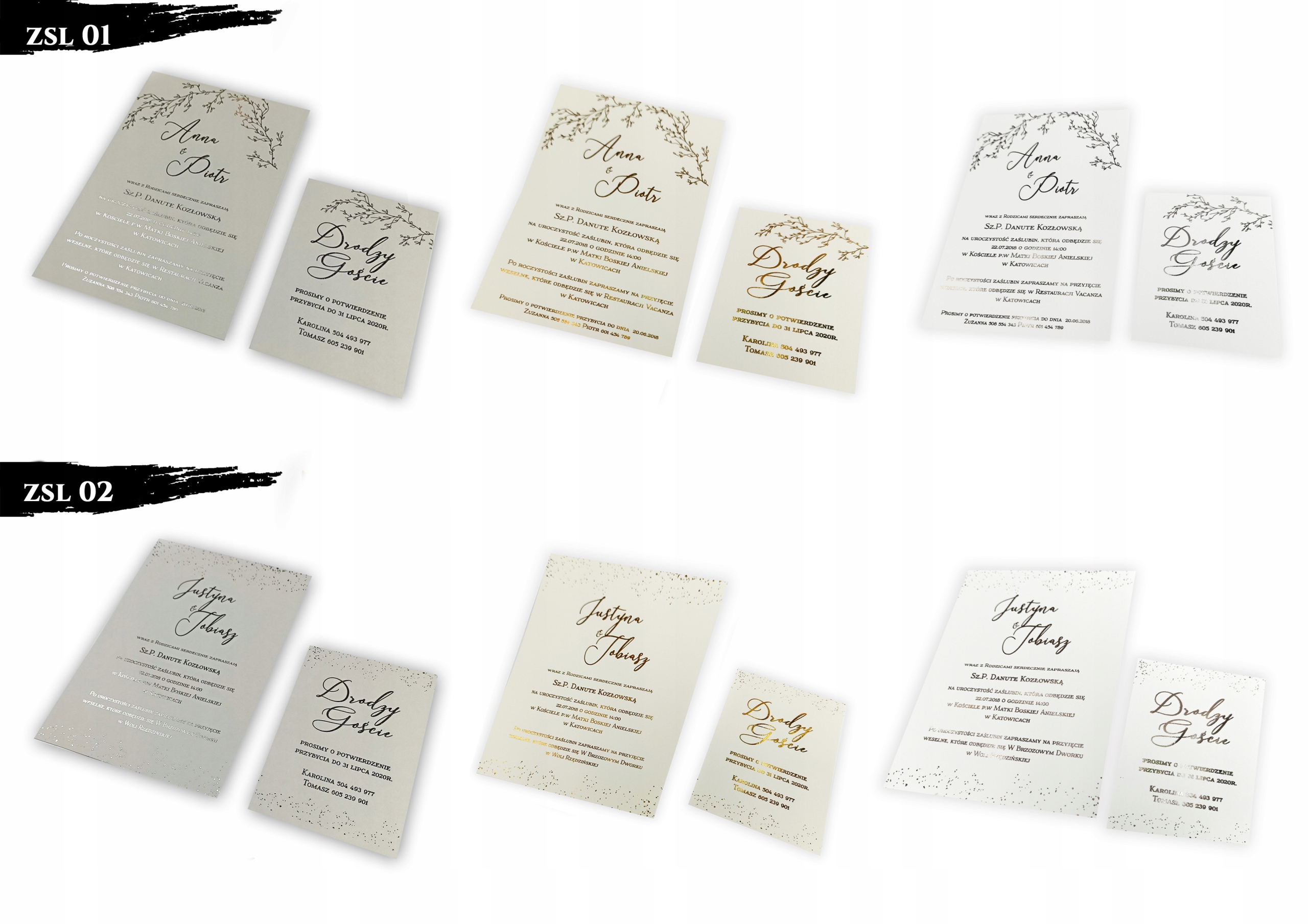 - односторонние приглашения на плотной бумаге с позолоченным текстом на приглашении и открытке