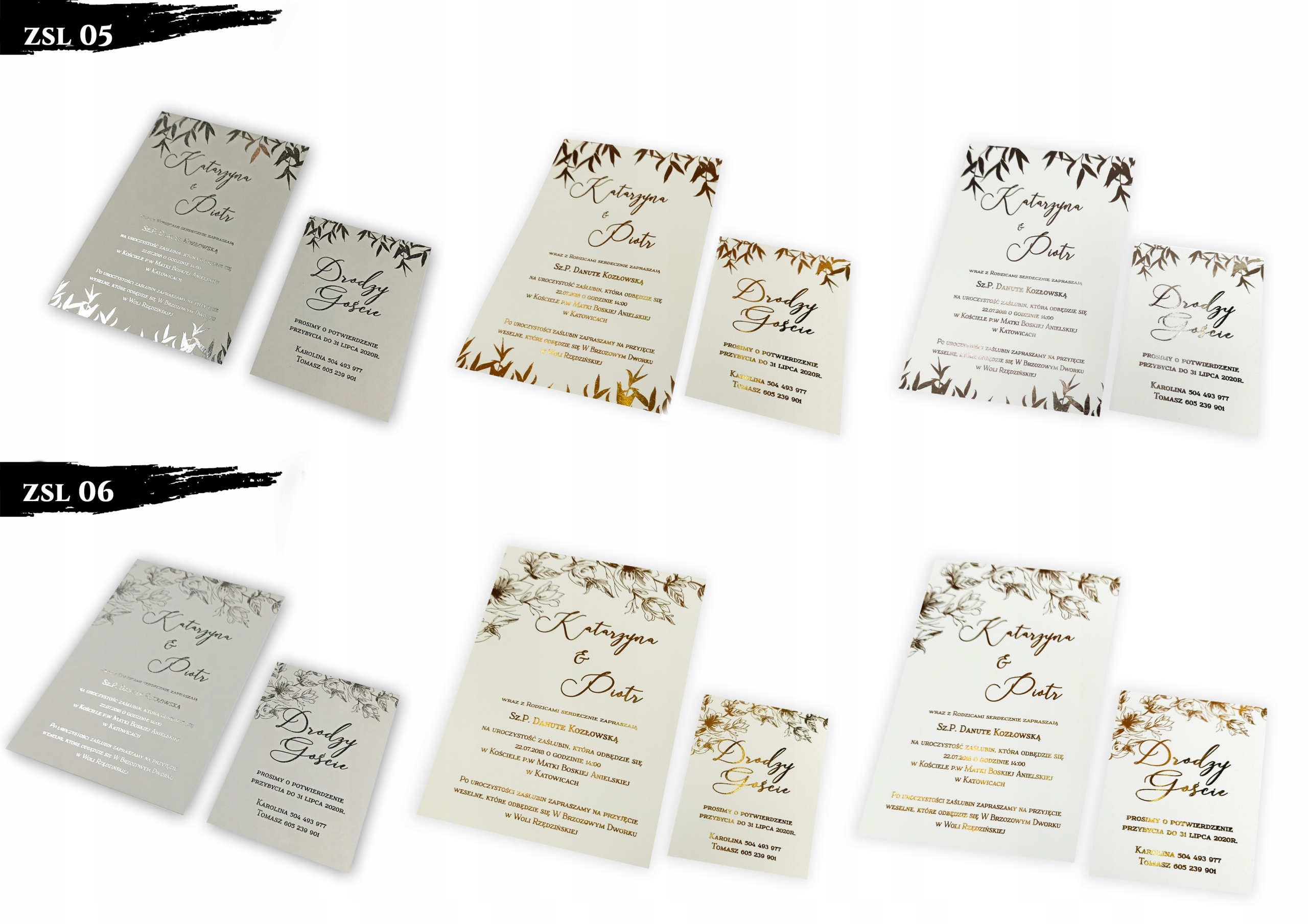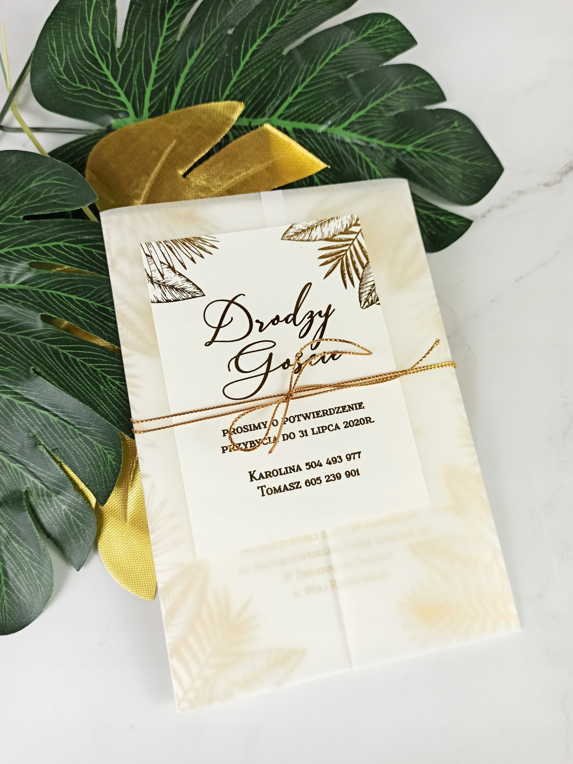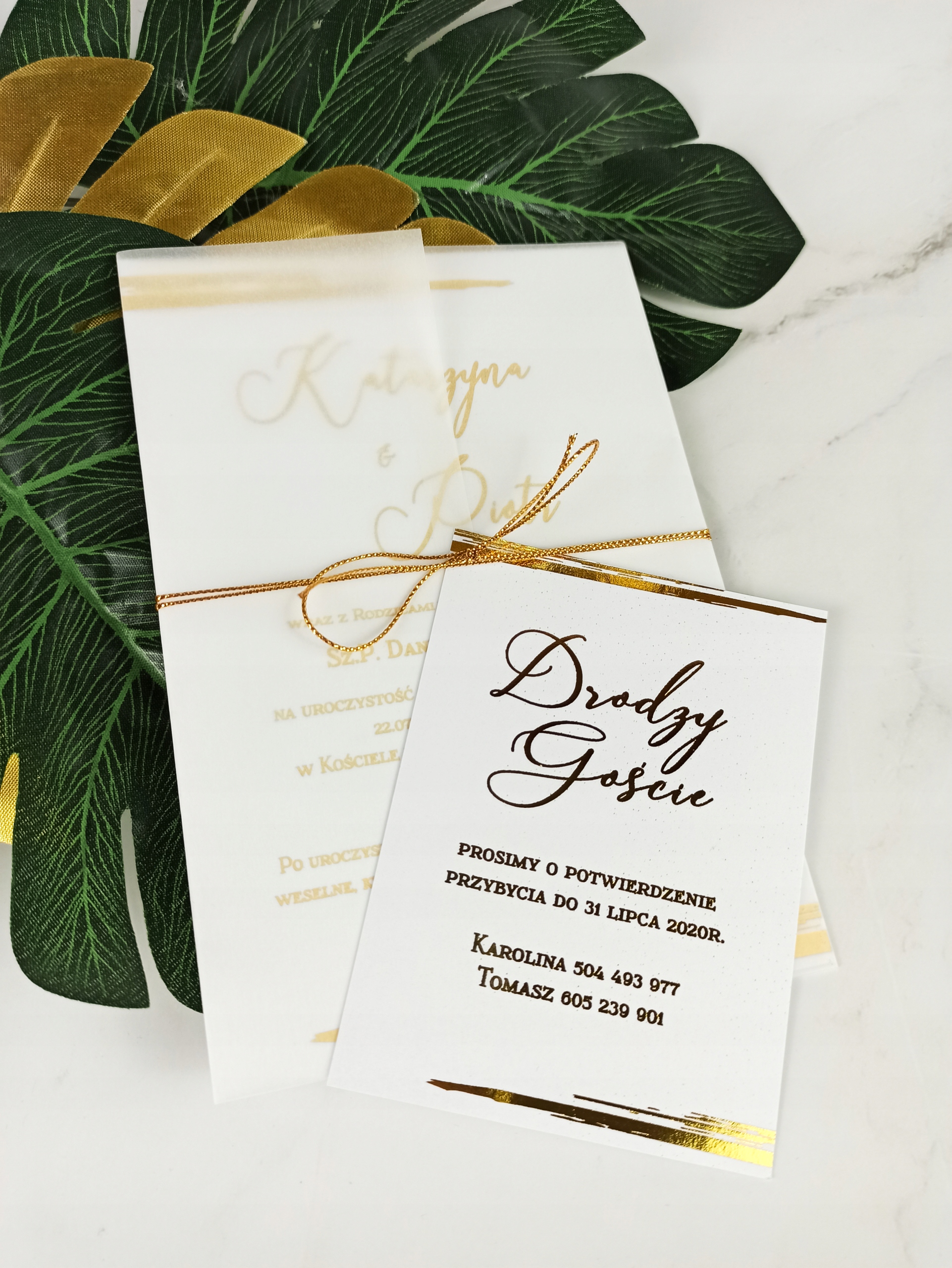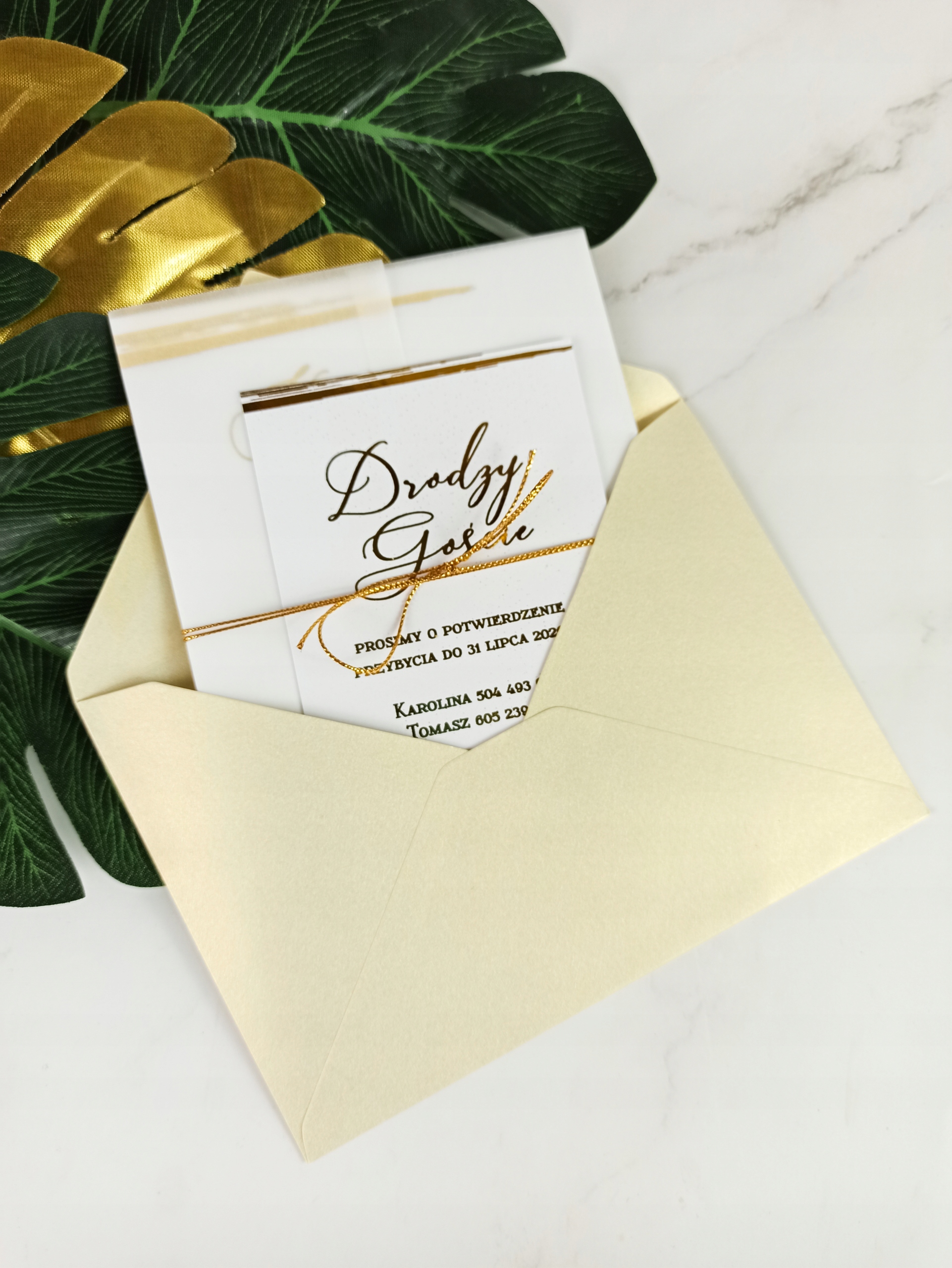 Коллекция позолоченных приглашений с калькой