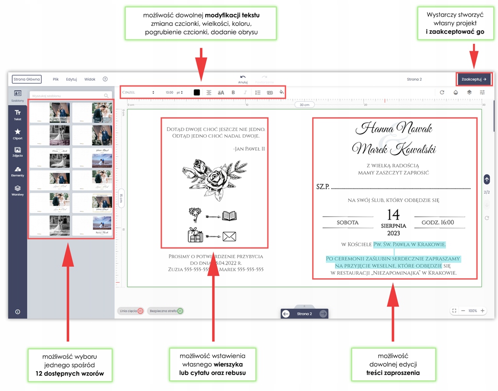 - Перед печатью вы сможете создать свой собственный дизайн приглашения