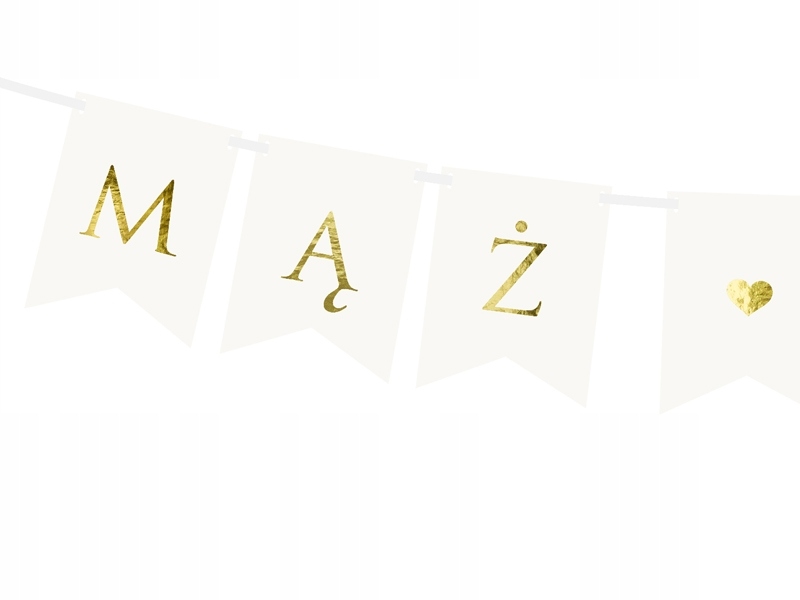 Белый баннер с золотой надписью «Муж Жена»