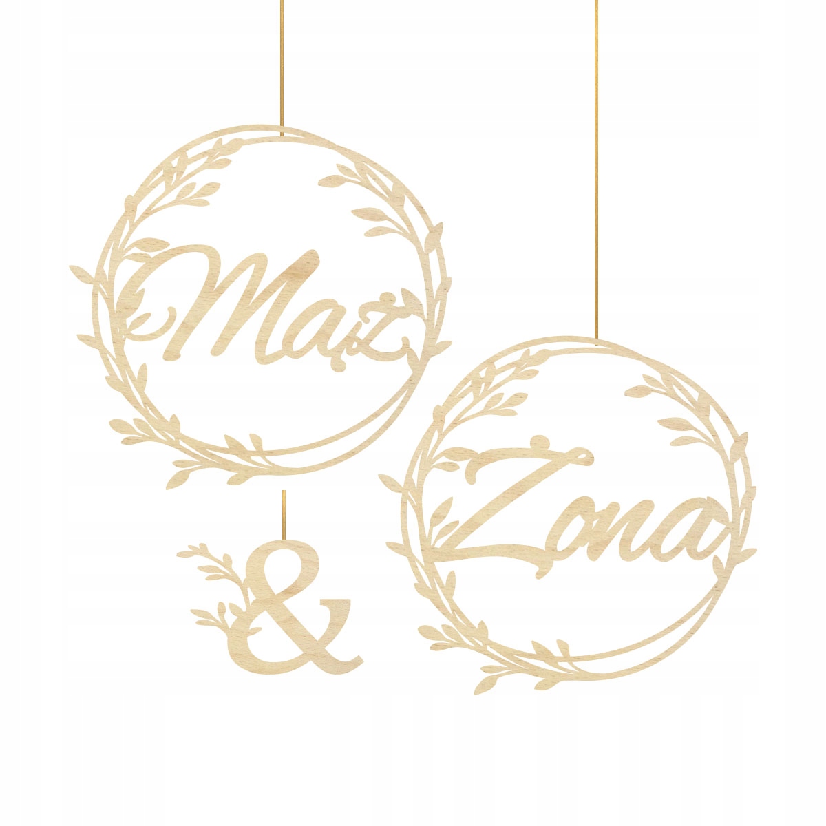 У украшений есть форма круга внутри, которые размещены надписями: муж и жена (мы также можем поставить инициалы молодой пары или все имена),