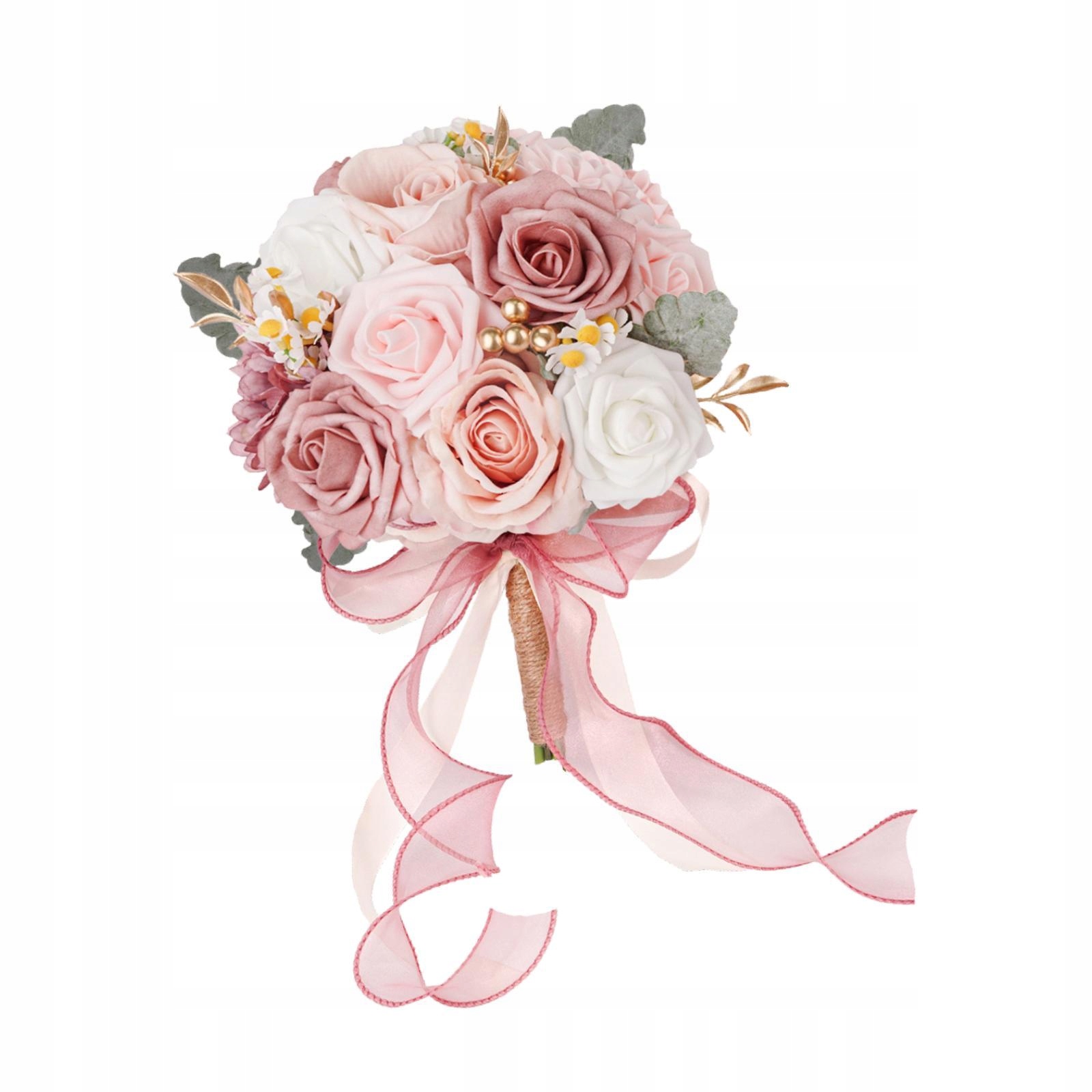 [Свадебный букет] Букет из искусственных цветов состоит из зеленых листьев, роз и других цветов с декоративными лентами, красивых и красивых, создавая очаровательную, классическую и элегантную атмосферу
