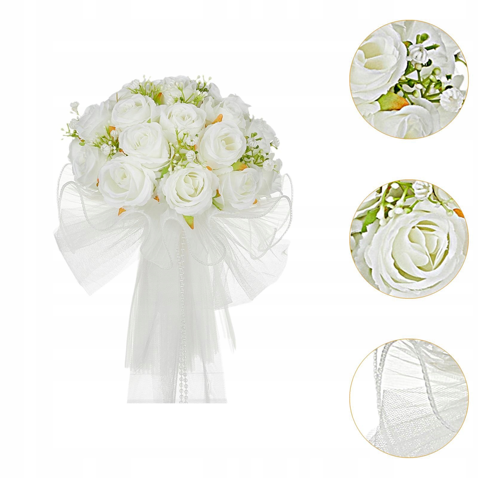 [Свадебный букет]: искусственные цветы состоят из роз и других цветов с декоративными лентами, красивыми и красивыми, образуя очаровательную, классическую и элегантную атмосферу