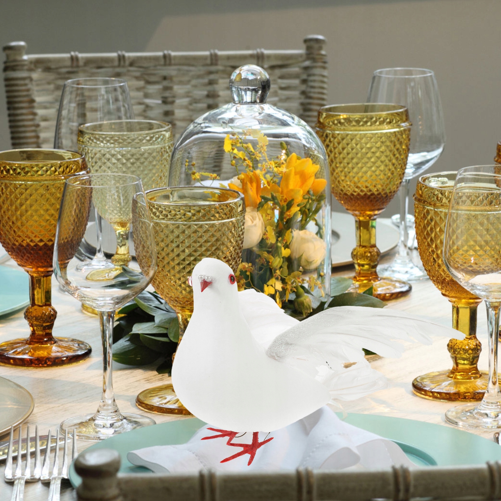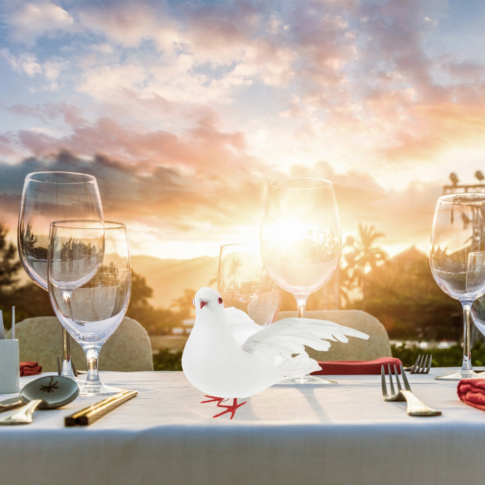 Это большой искусственный голубь, расправляющий крылья для украшения. Каждая птица полностью покрыта перьями. Создавайте потрясающие сезонные экспонаты, украшения для вашего дома или свадьбы. Яркое и многоразовое украшение стола для вечеринки, карнавала, свадьбы и т. д.