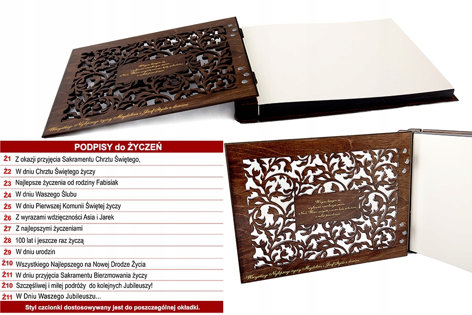 ART-KEY предлагает оригинальные, солидные фотоальбомы в качественной деревянной рамке, украшенные индивидуальной лазерной гравировкой. Прекрасный подарок на все случаи жизни: - Крещение, Святое Причастие, День Рождения, Именины, Юбилей, Свадьба, Юбилей, Благодарность родителям и т.д. Вся продукция в нашем предложении производится в Польше. Контролируя каждый этап производства, начиная от проектирования и заканчивая сдачей готового продукта заказчику, мы можем гарантировать высочайшее качество нашей работы. Весь процесс изготовления фотоальбома осуществляется в нашей студии. Благодаря этому мы можем создавать проекты по индивидуальным заказам клиентов.