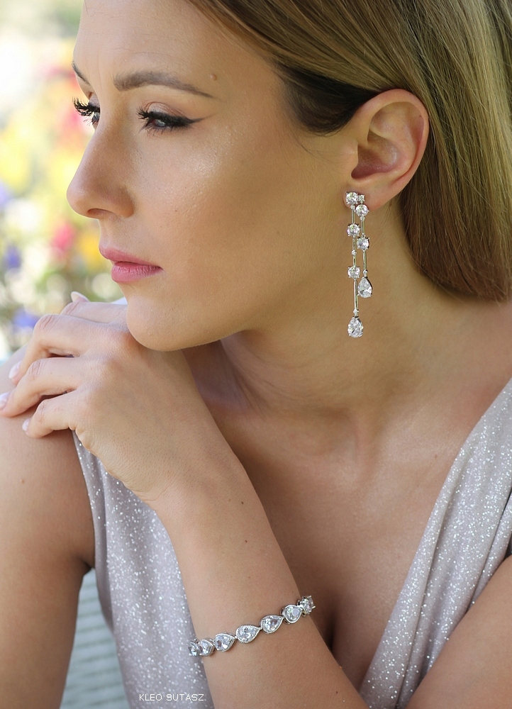 ВЕСІЛЬНИЙ КОМПЛЕКТ СРІБНІ СЕРЕГКИ БРАСЛЕТ Сльози