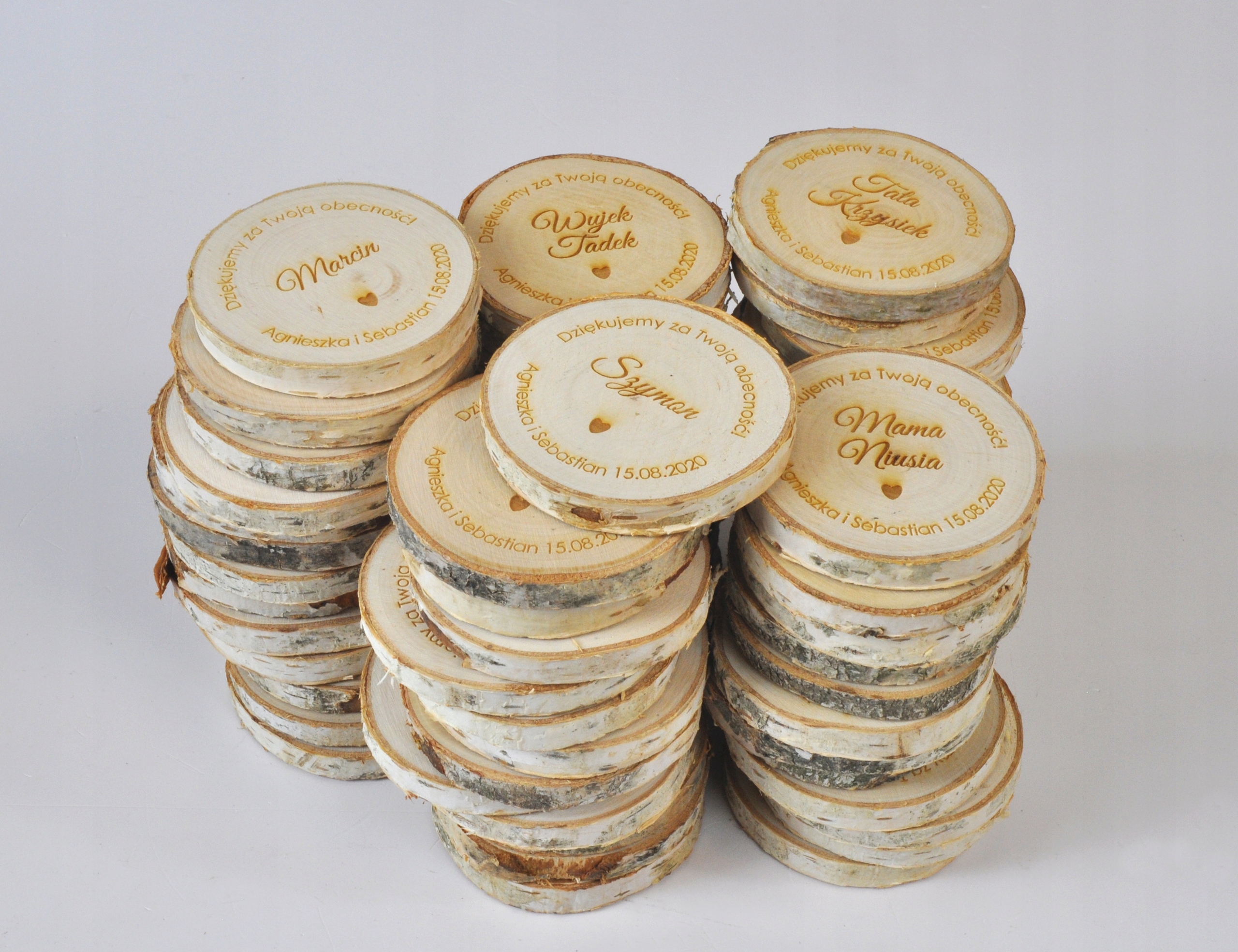 Свадебные благодарственные открытки изготовлены из березовых ломтиков толщиной 8 мм. Маркировка наносится лазером, что делает ее точной и нестираемой.