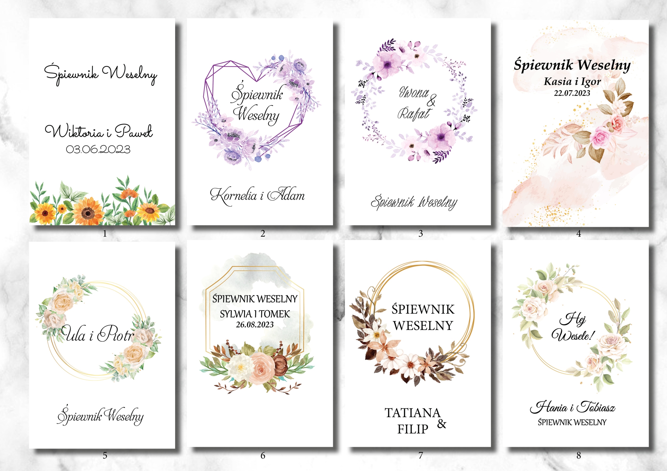 - данные для персонализации (имена, дата, должна ли надпись быть сборником свадебных песен, эй, свадьба или любая другая надпись)
