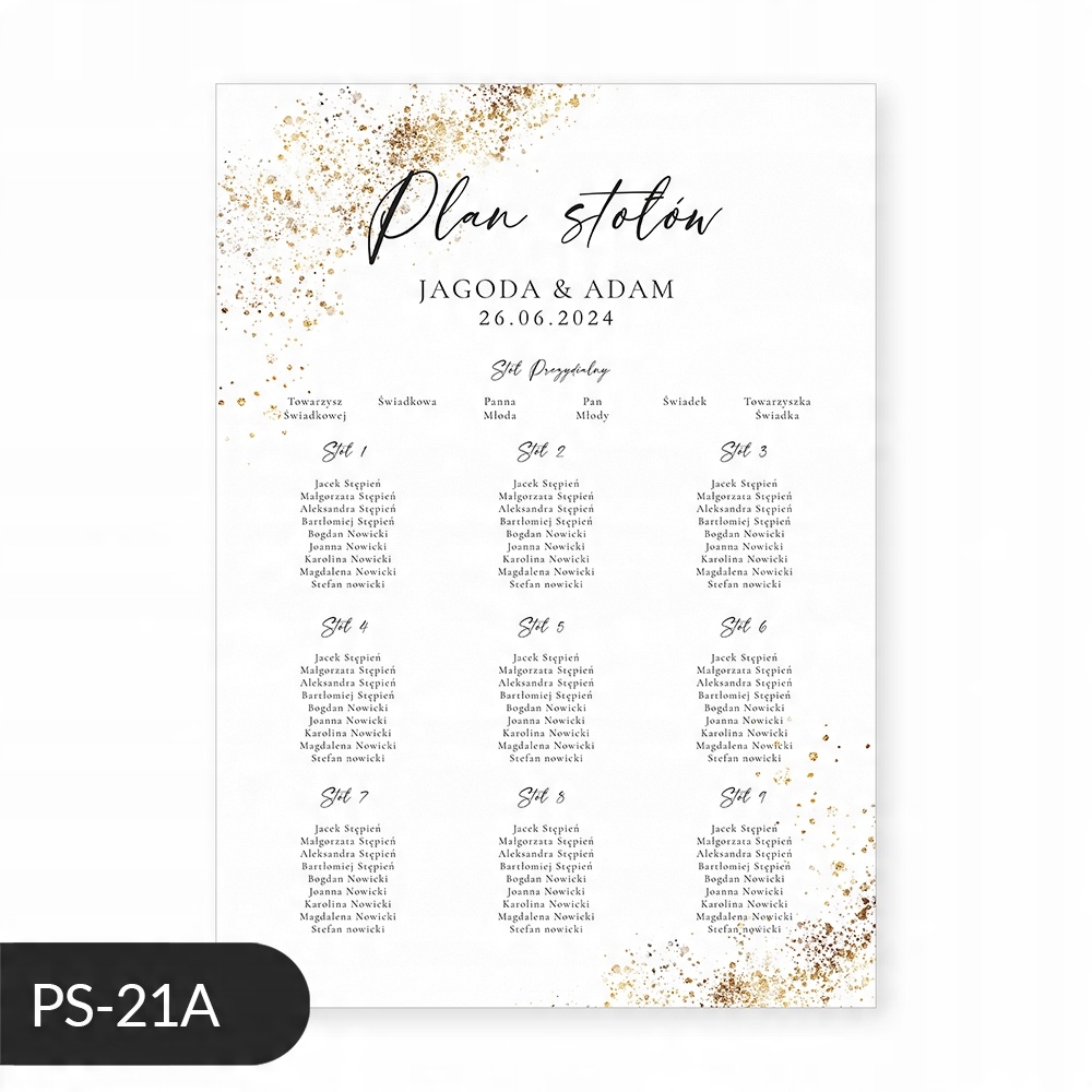 Минималистичный свадебный плакат с планом стола и золотыми точками