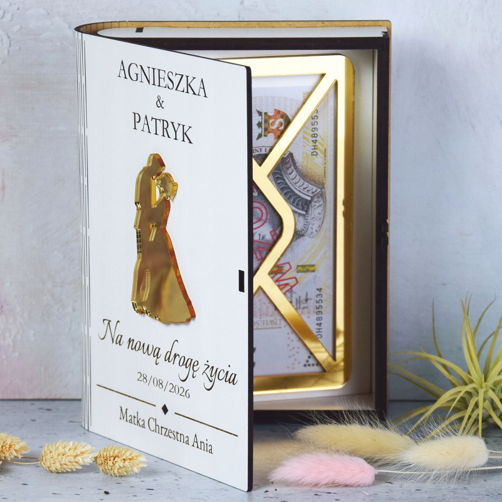 Уникальный подарок для особенного человека, идеально подходящий в качестве свадебного подарка. Молодожены, получившие подарок, будут приятно удивлены вашей изобретательностью и непременно довольны. Все, что вам нужно сделать, это положить купюры в конверт. Коробка является декоративным элементом, поэтому ее можно смело размещать на комоде, письменном столе или в витрине.