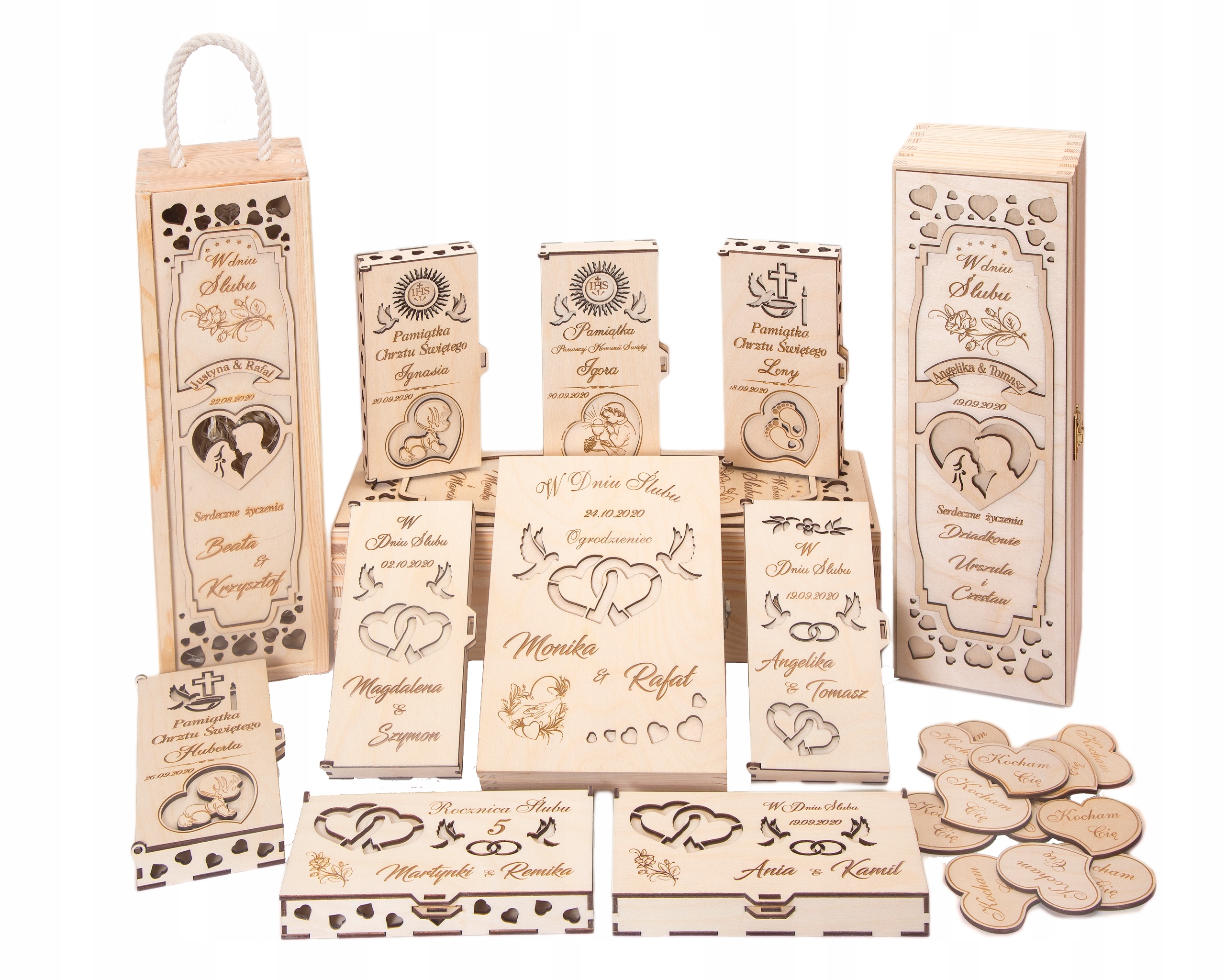 День свадьбы – особенный день, подарите жениху и невесте уникальный подарок, который надолго останется сувениром, упакуйте вино или алкоголь в одну из наших эффектных коробок