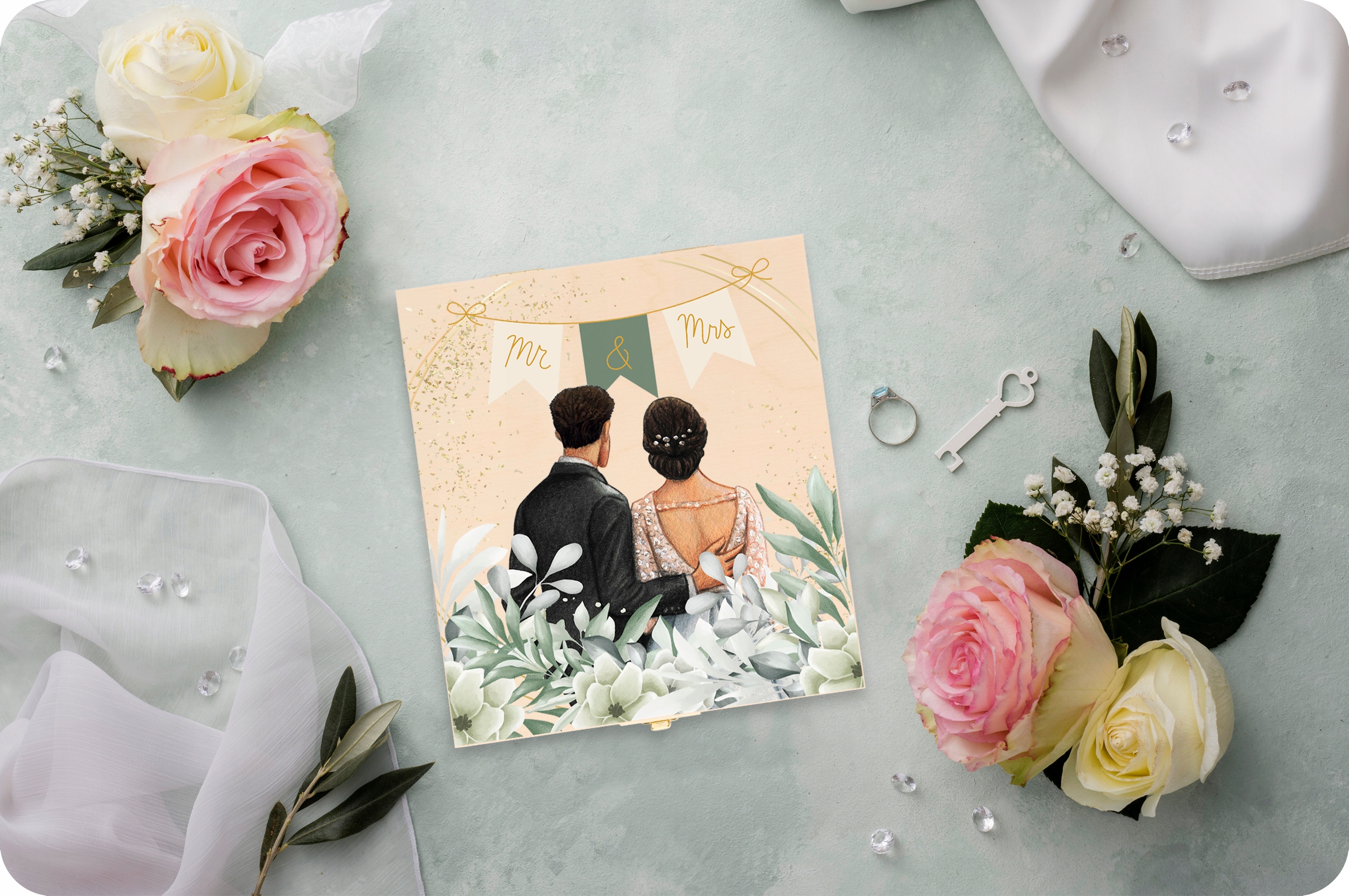 ⭐Оригинальный свадебный подарок для любимых — деревянная шкатулка с персонализированными наклейками