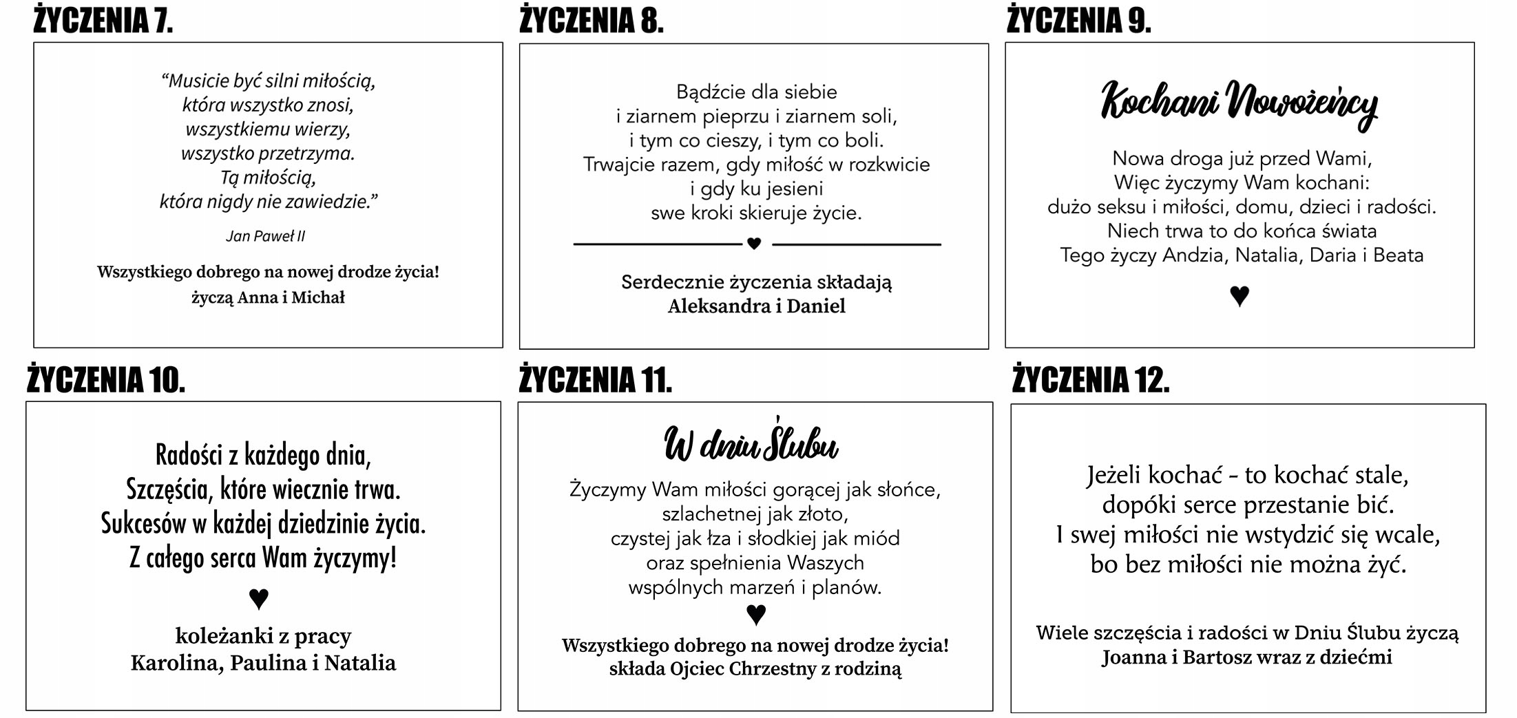 Не забудьте отправить нам текст именно в том виде, в котором вы хотите, чтобы он был выгравирован. Всегда произносите имена и тексты в соответствующем числе (единственном или множественном). Имена пишите с большой буквы, например, Кася, Агнешка и т. д. Также не забывайте оставлять в рифме и именах польские символы (ą,ę,ł и т. д.), в местах используйте знаки препинания (точки, запятые и т. д.). куда его следует добавить.