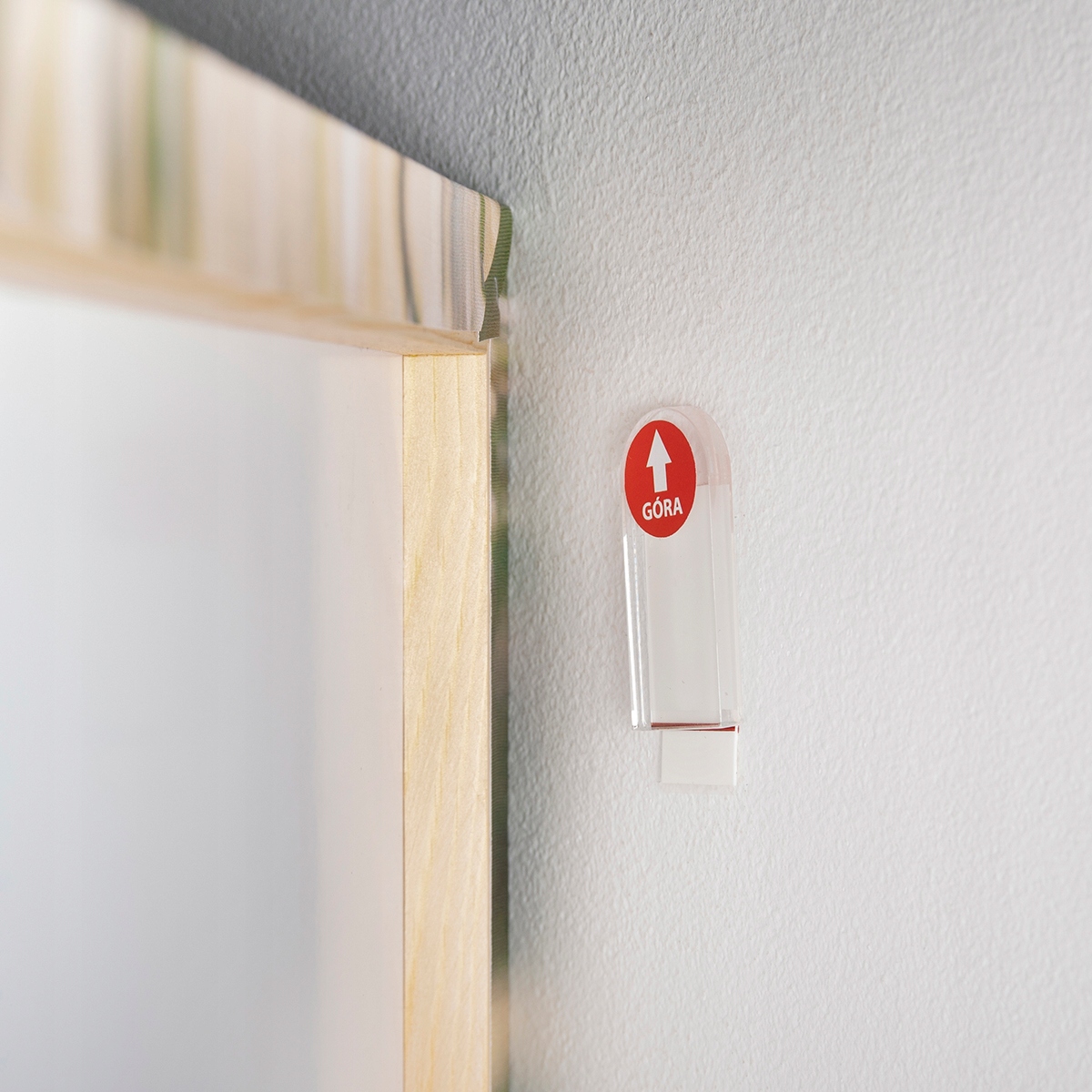 Выберите размер изображения, который вам больше всего подходит. Размер изображения должен быть пропорционален имеющейся у вас площади стены. Вы можете повесить одну картину или создать целую фотогалерею из нескольких картинок. Каждая картина имеет систему крепления с вешалкой. Для ее подвешивания не потребуются никакие инструменты. Вам также не придется сверлить отверстия в стене.
