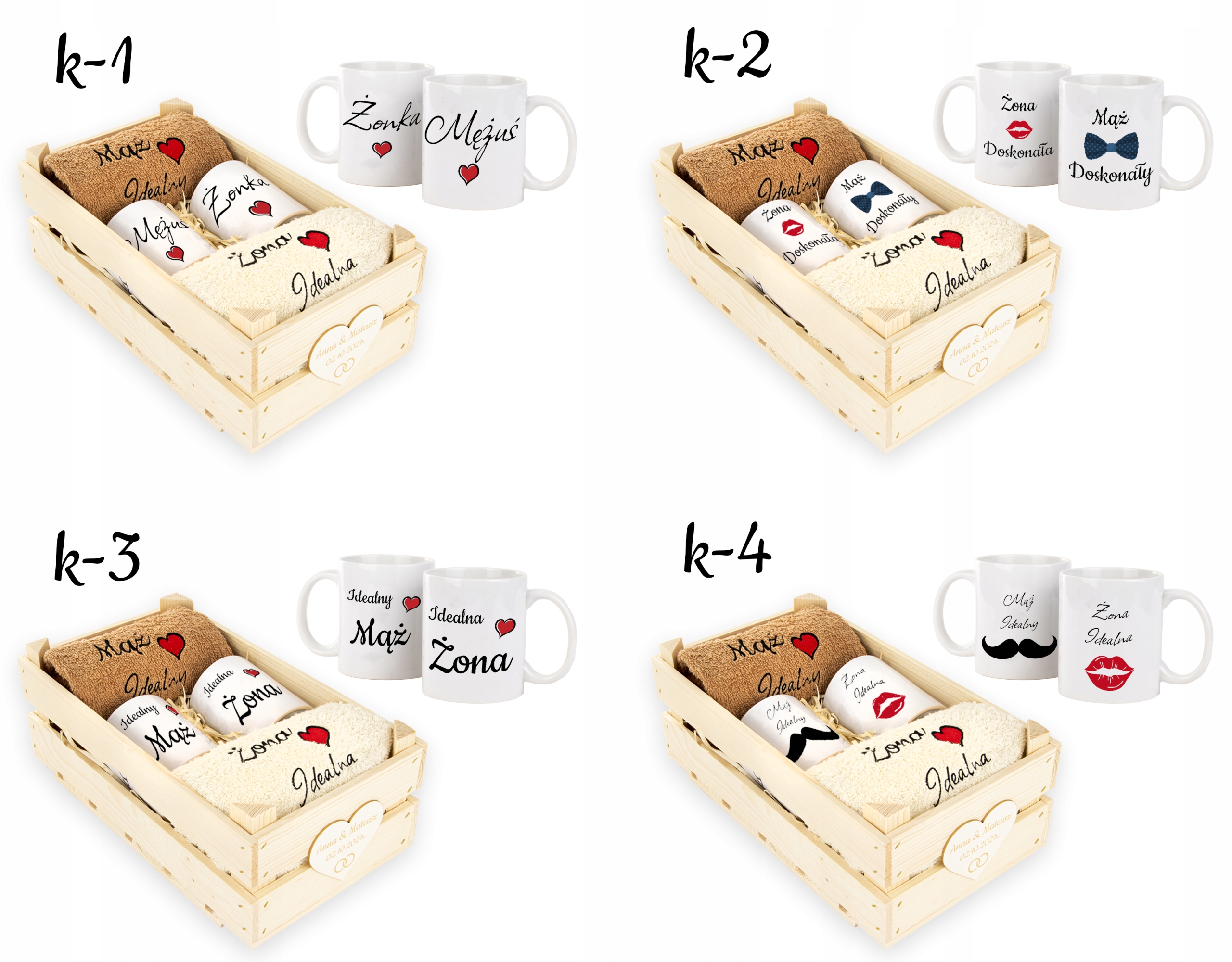деревянная коробка с полотенцами и чашками + подвеска с гравировкой на коробке + поздравительная открытка