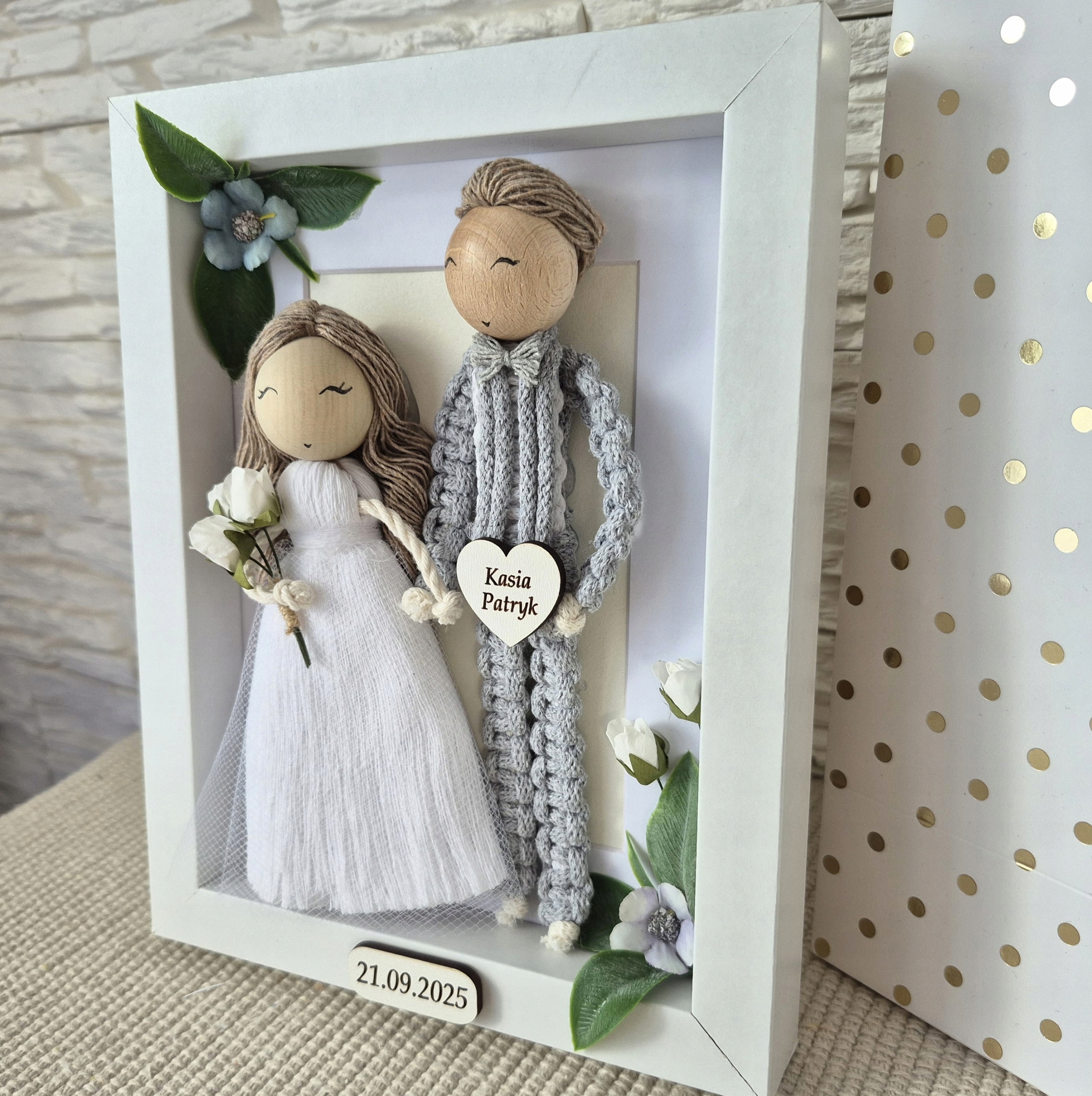 Красивая 3D -рамка глубоко с куклами Macram, парой молодых людей h2>