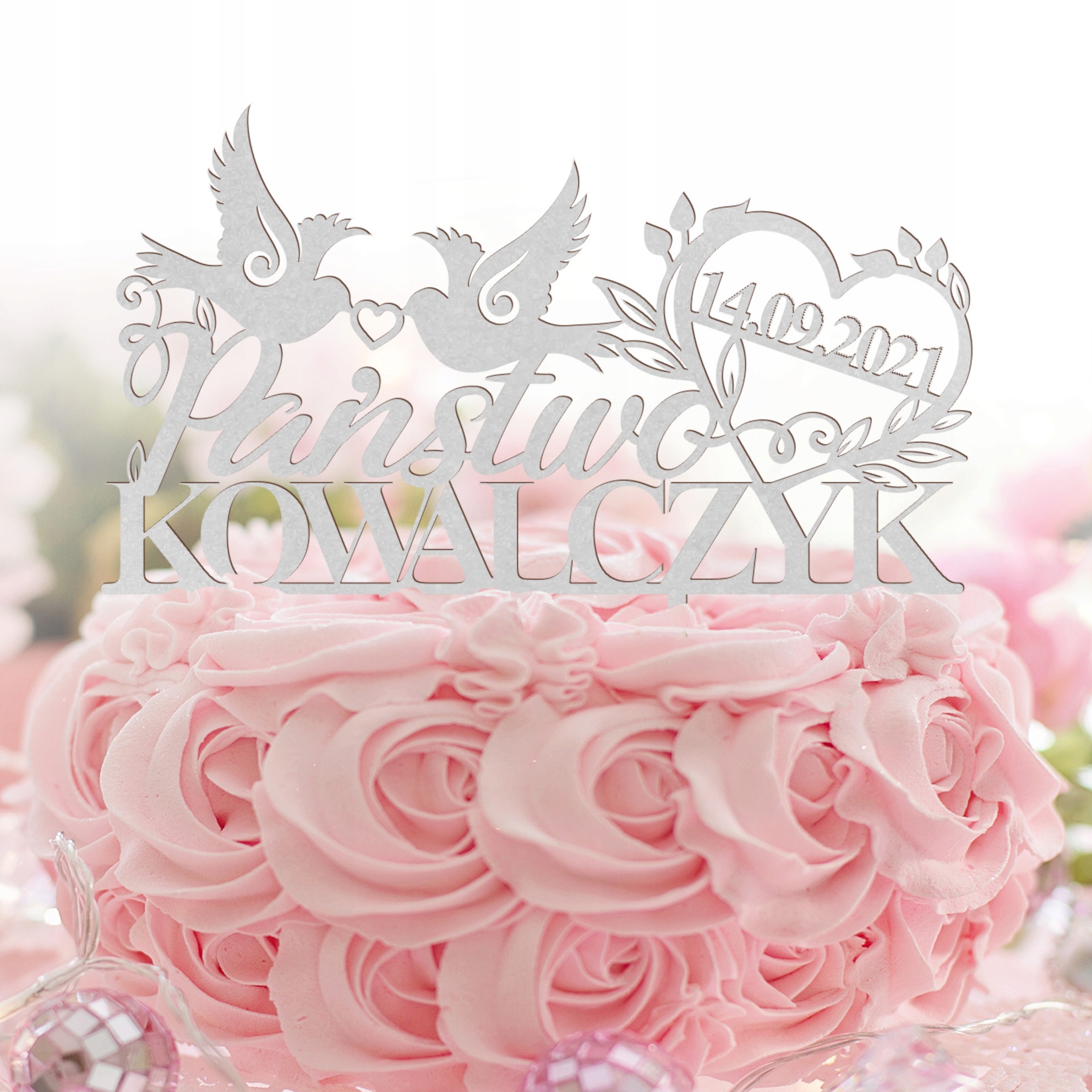 Уникальное украшение для особого случая! Топпер с именем жениха и невесты и датой свадьбы станет украшением любого торжества.