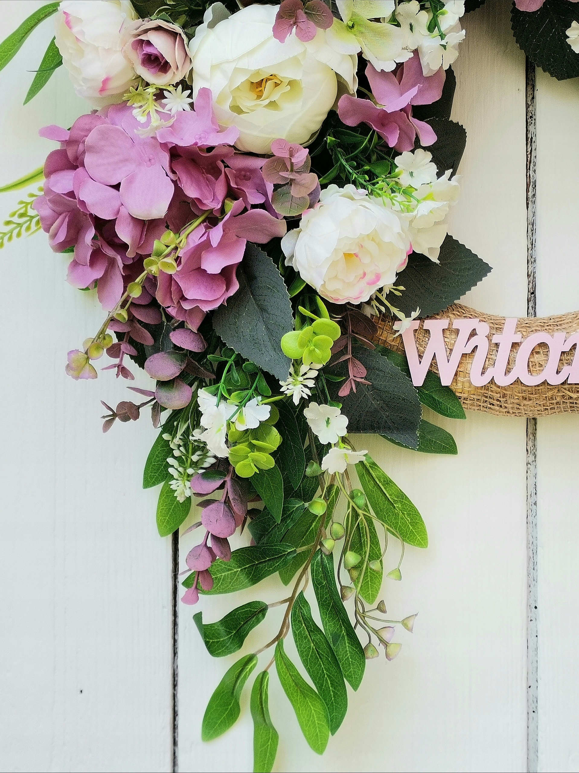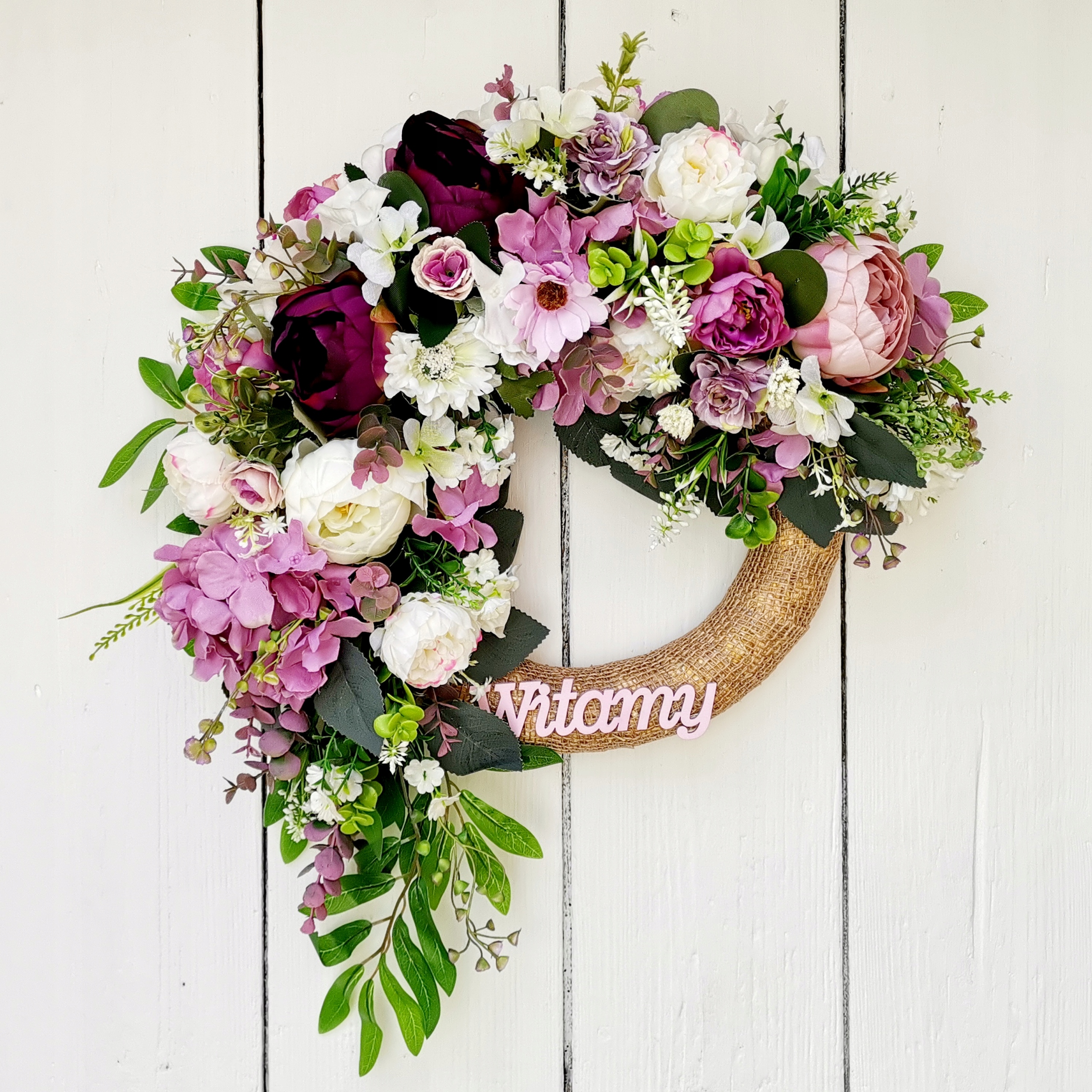 Весільний вінок WELCOME весна, фіолетовий, на двері, квіти, квіти