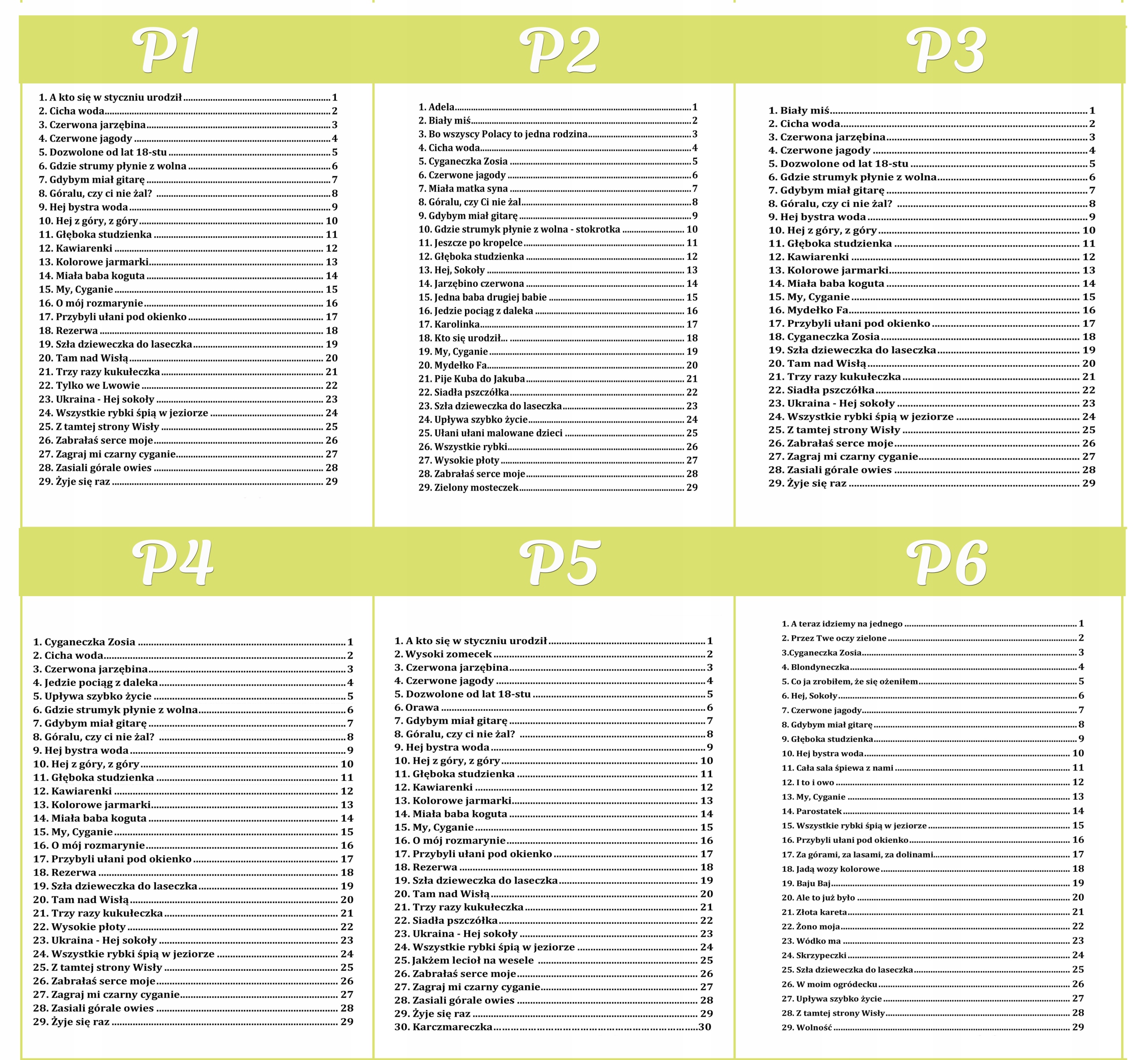 - Внутри 29 песен с пронумерованными страницами (каждая песня на отдельной странице)