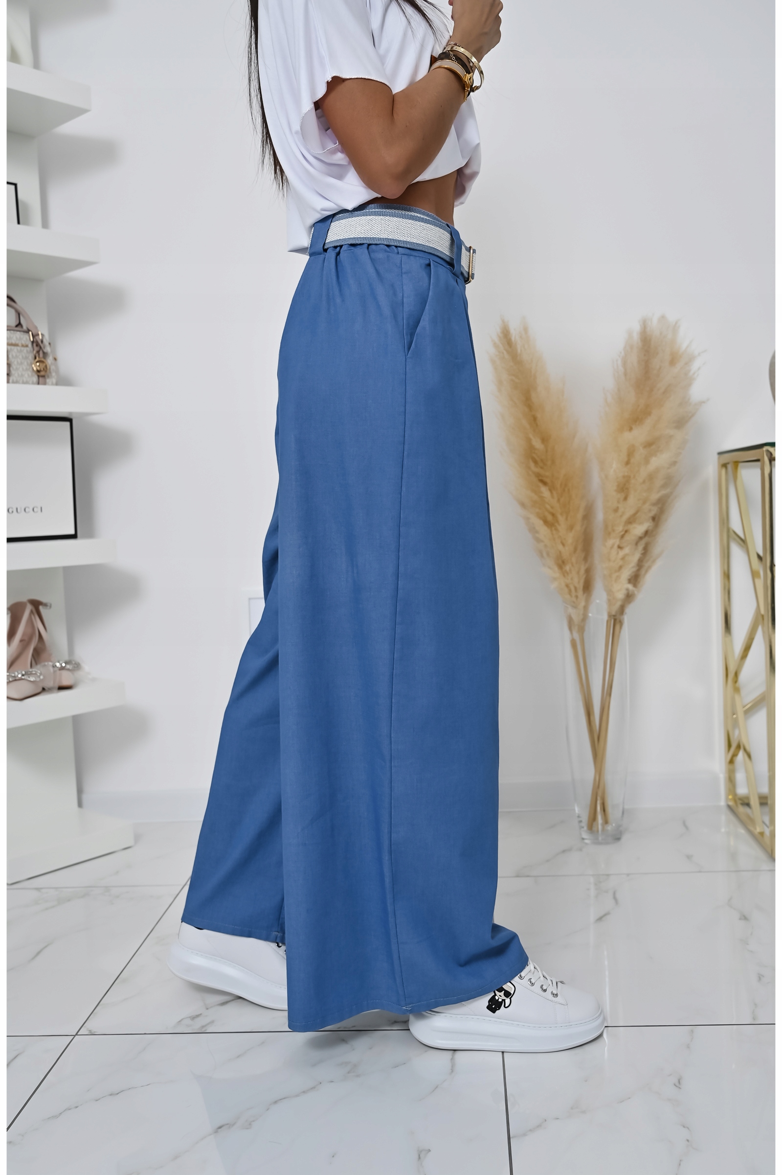 Весенние широкие легкие брюки с поясным ремнем! WZ.1