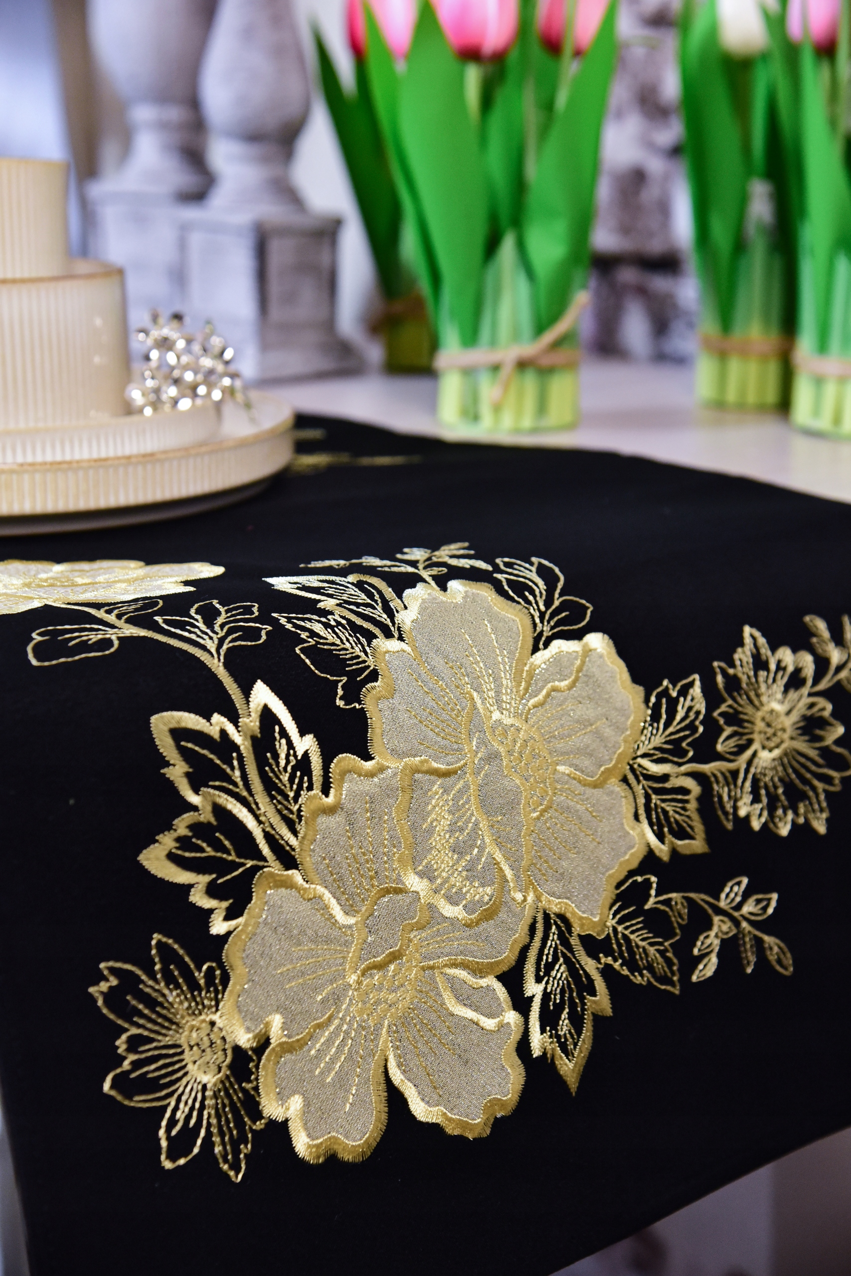 Декоративный протектор 40x90 см - черный вышитый золотой нитью ✨