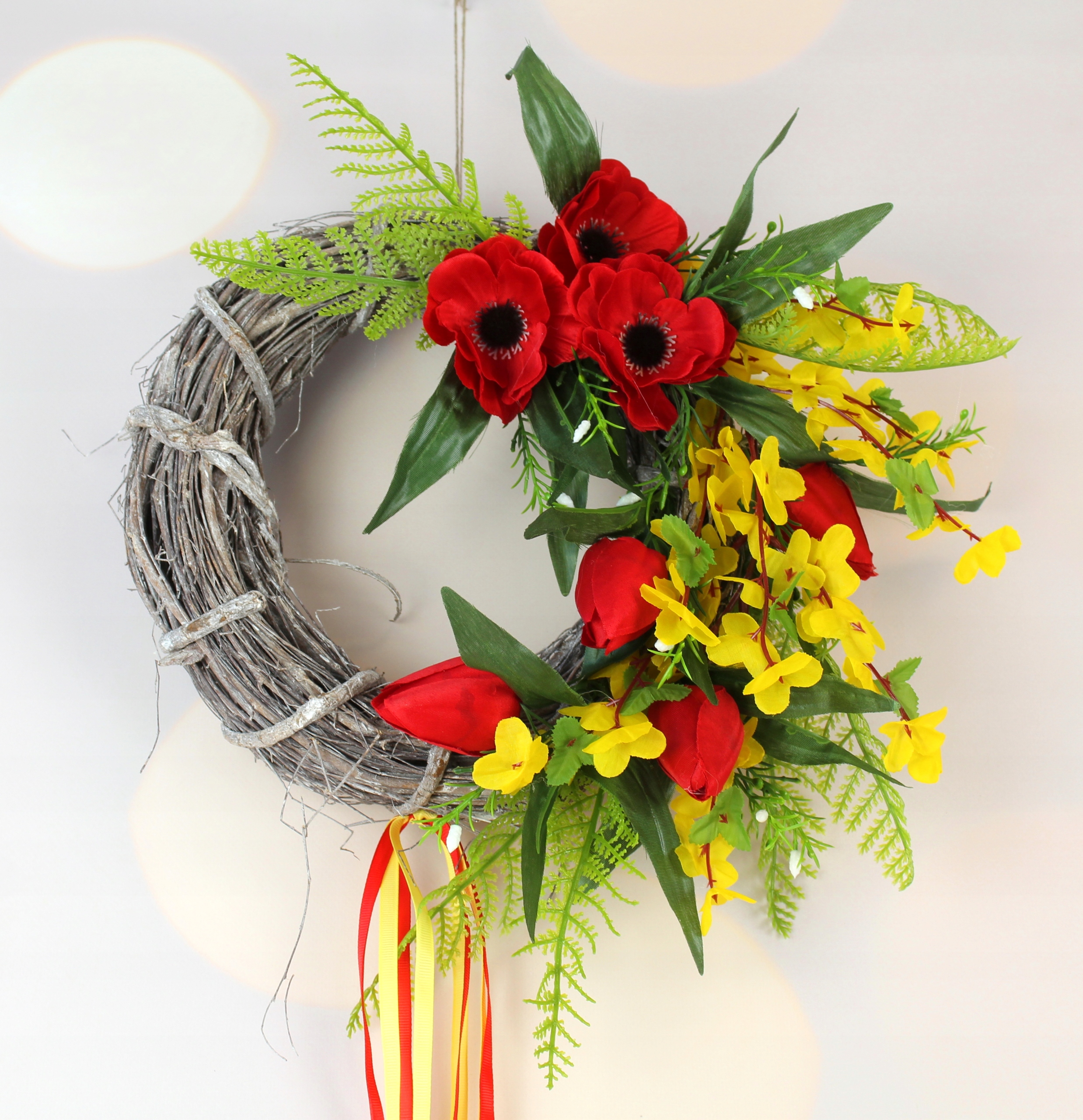 Весняний дверний вінок Маки Тюльпани Пасхальна прикраса для прикрас дому